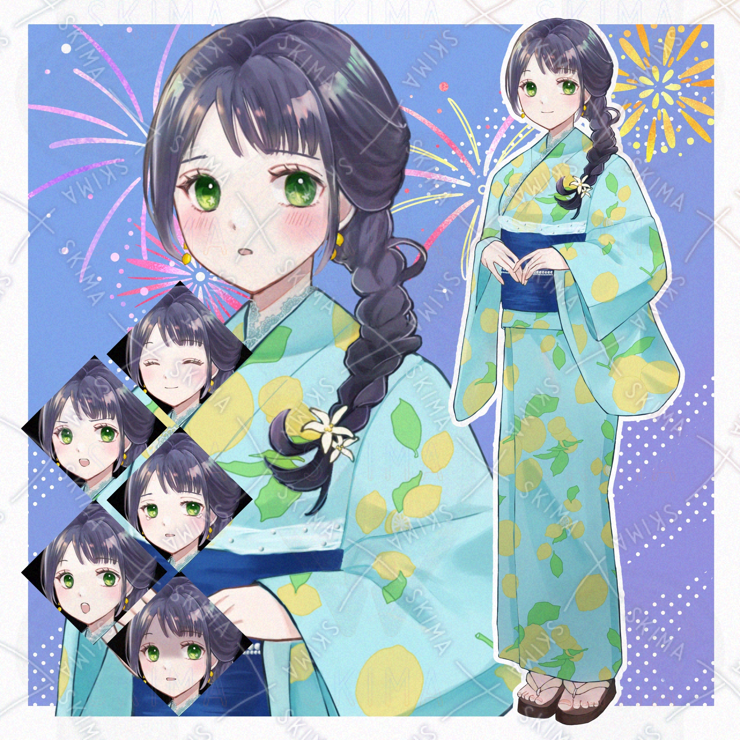 【表情7種】浴衣の女の子
