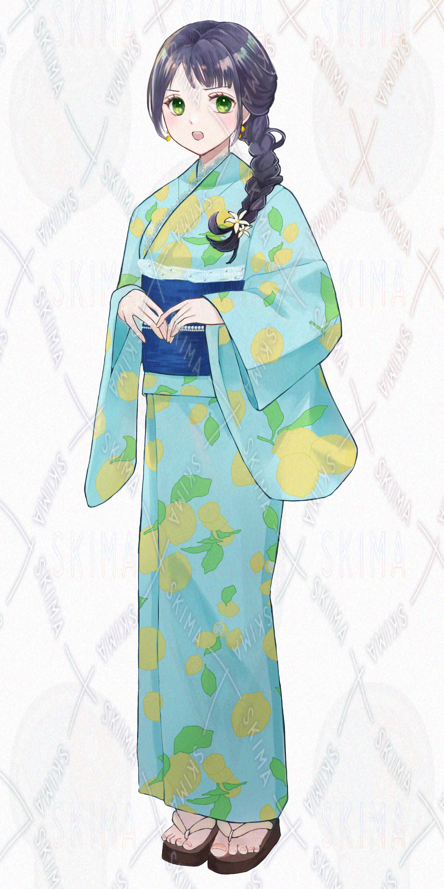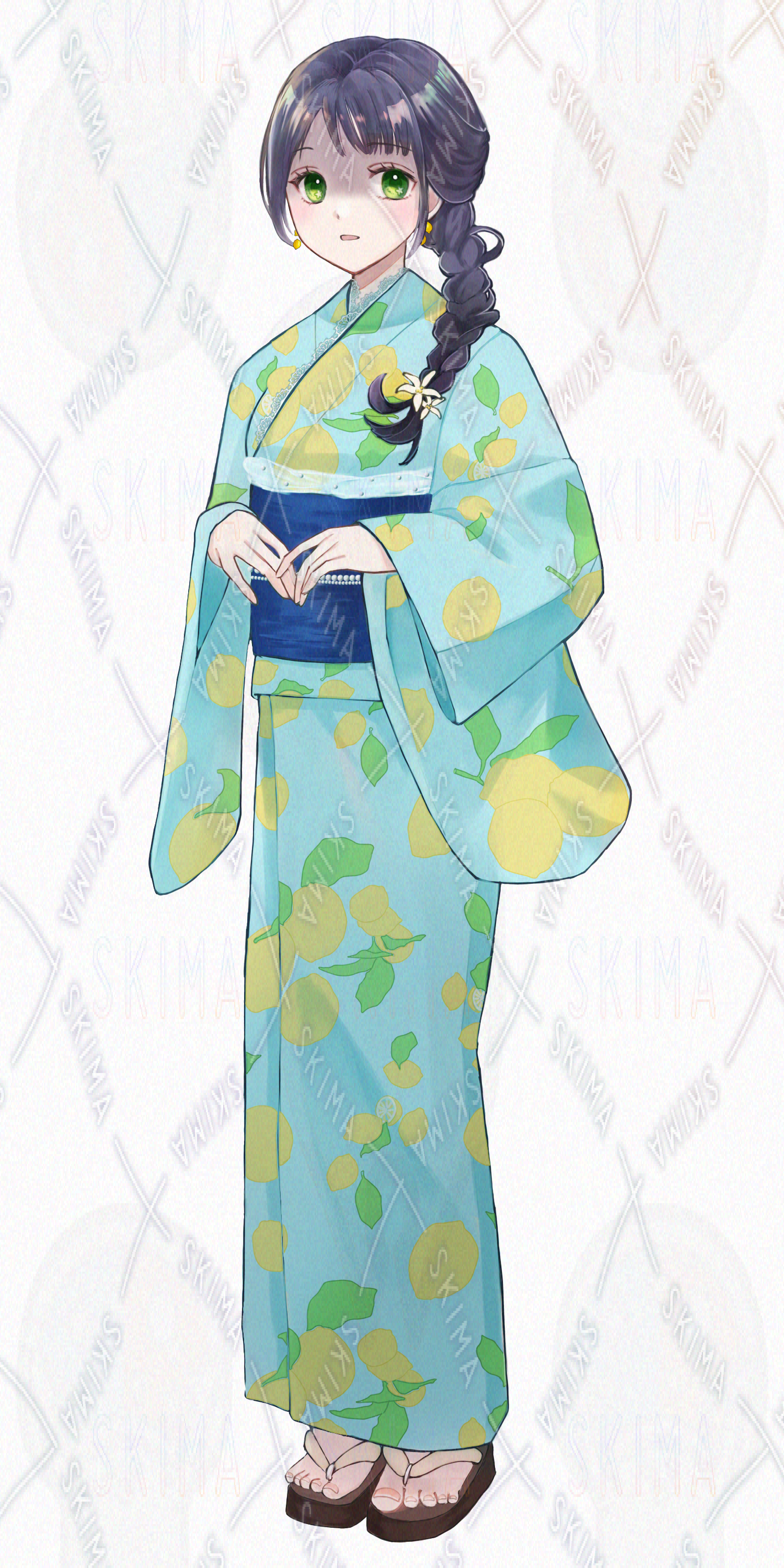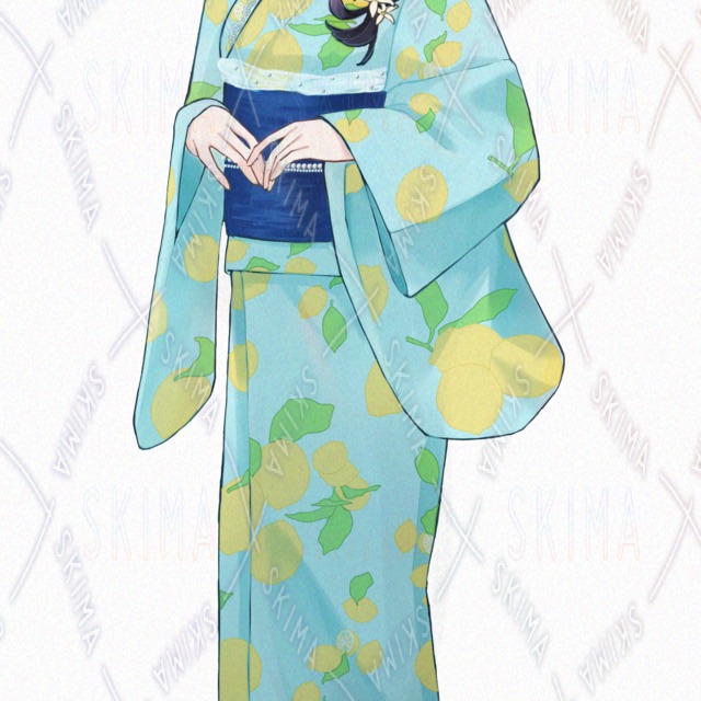 レモン柄の浴衣を着た女の子です。