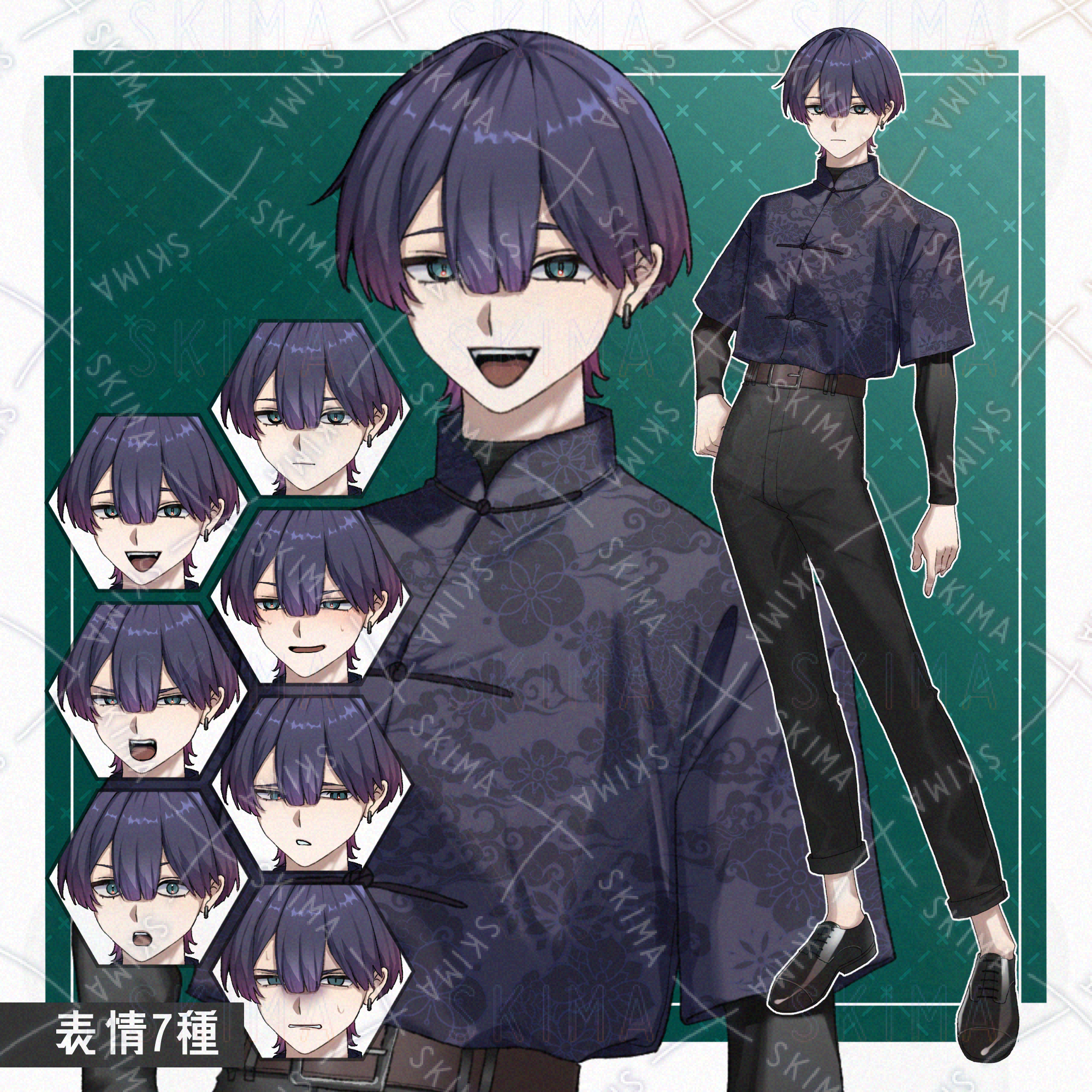 柄シャツの男性【全身立ち絵+表情差分7種】