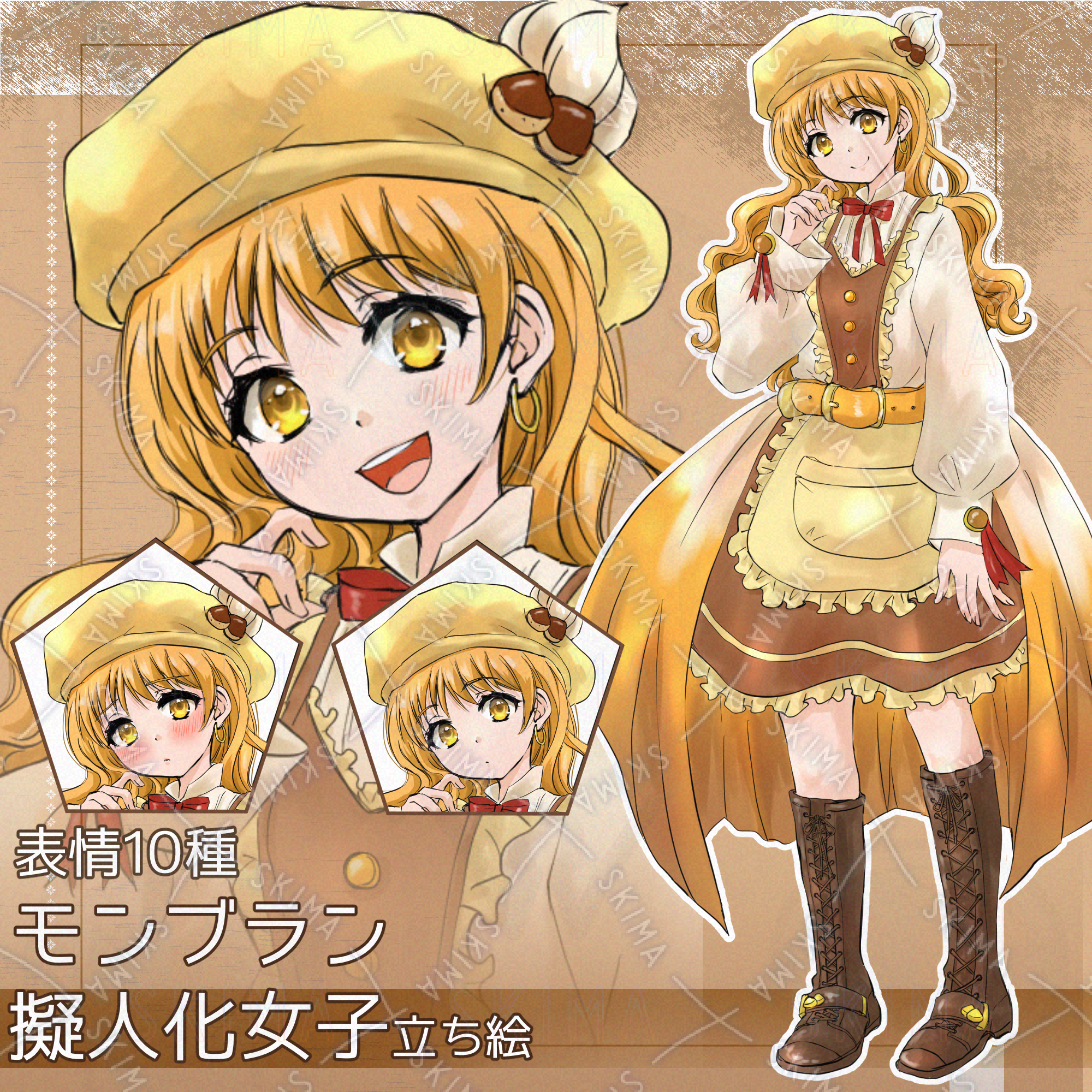 立ち絵 / キャラ素材 / スイーツ擬人化 / 女の子 / モンブラン / 秋色 / ファンタジー / TRPG / 配信素材 / 表情差分あり