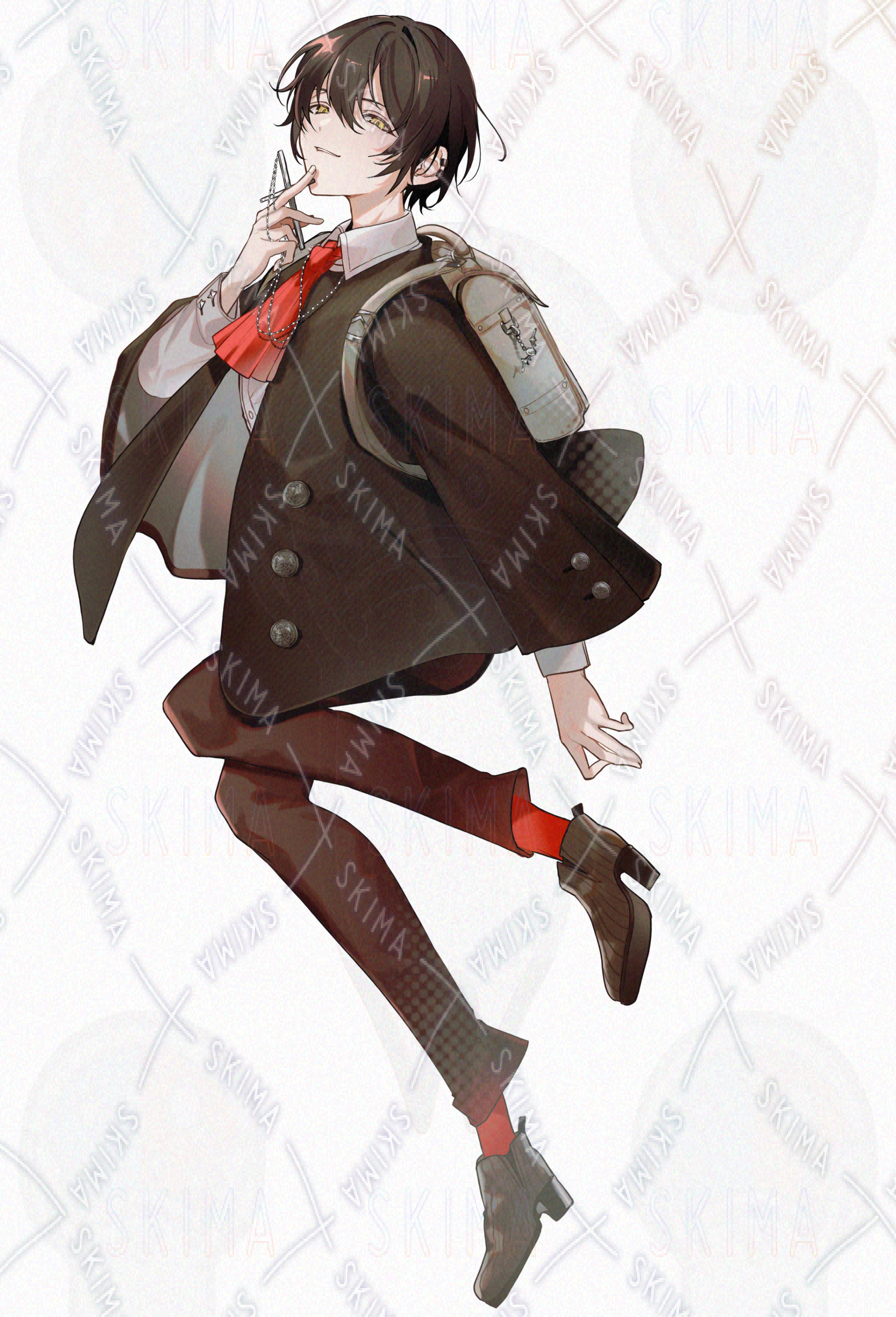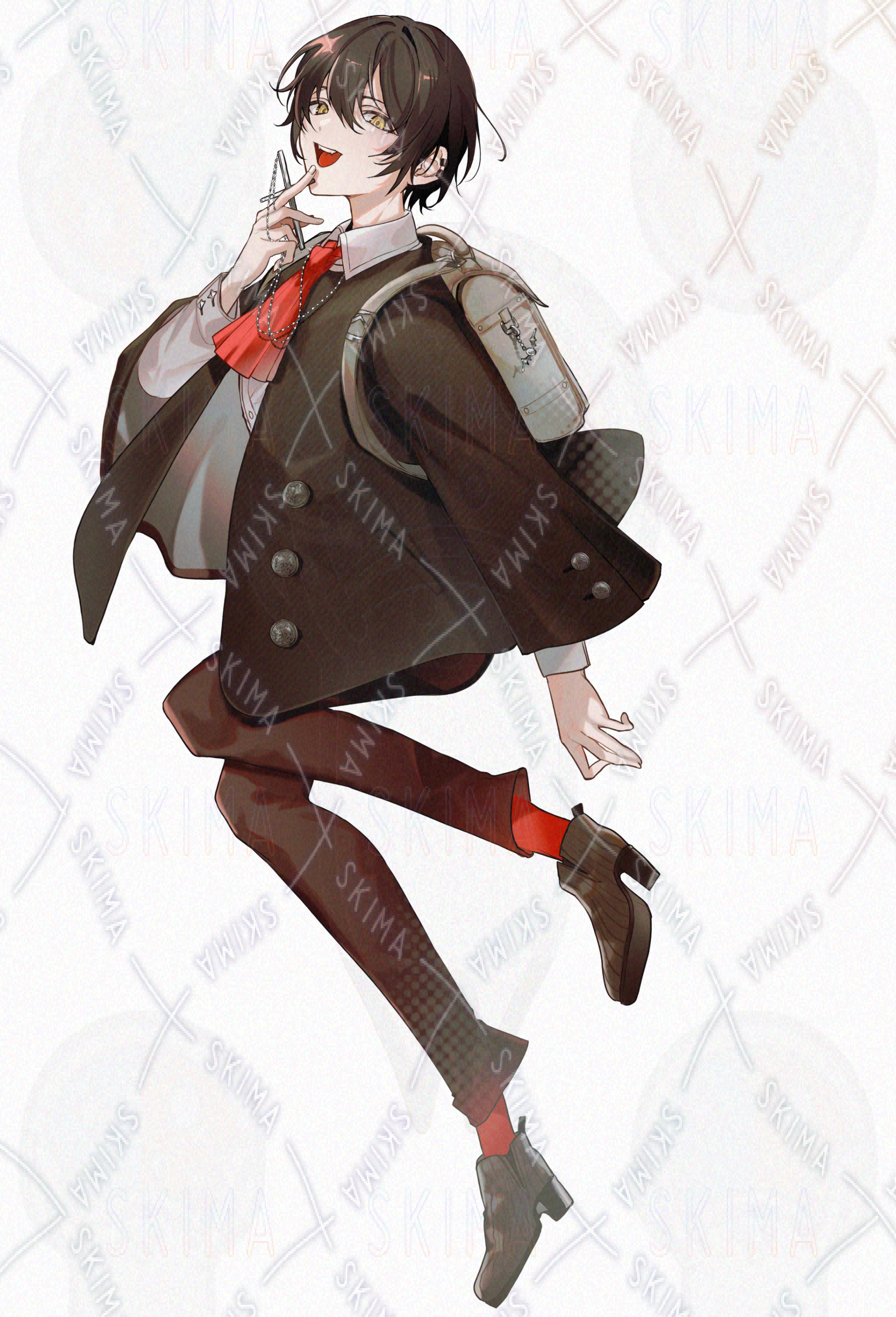 少年/青年/美少年/美青年/茶髪/金目/黄色目/可愛い/格好いい/制服/私服/秋冬/コート/悪魔/ヴァンパイア/大鎌