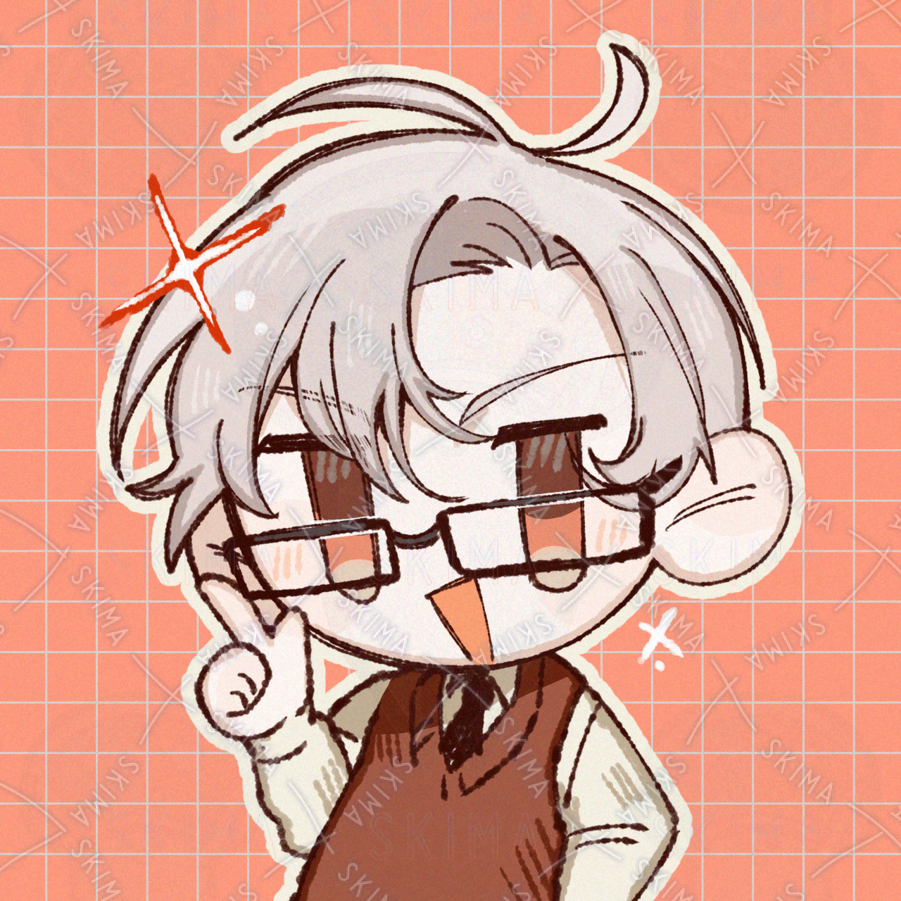 ミニキャラ SDキャラ メガネ 赤色 ベスト