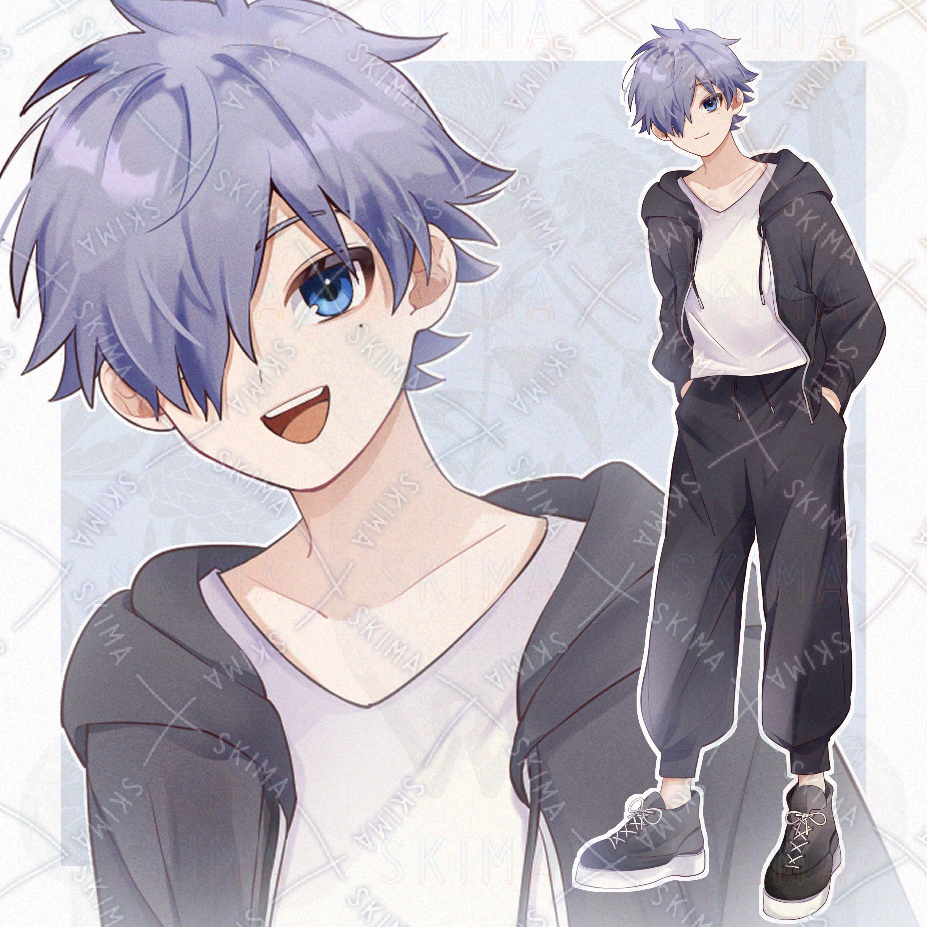 青髪パーカー少年【立ち絵 表情7種類】