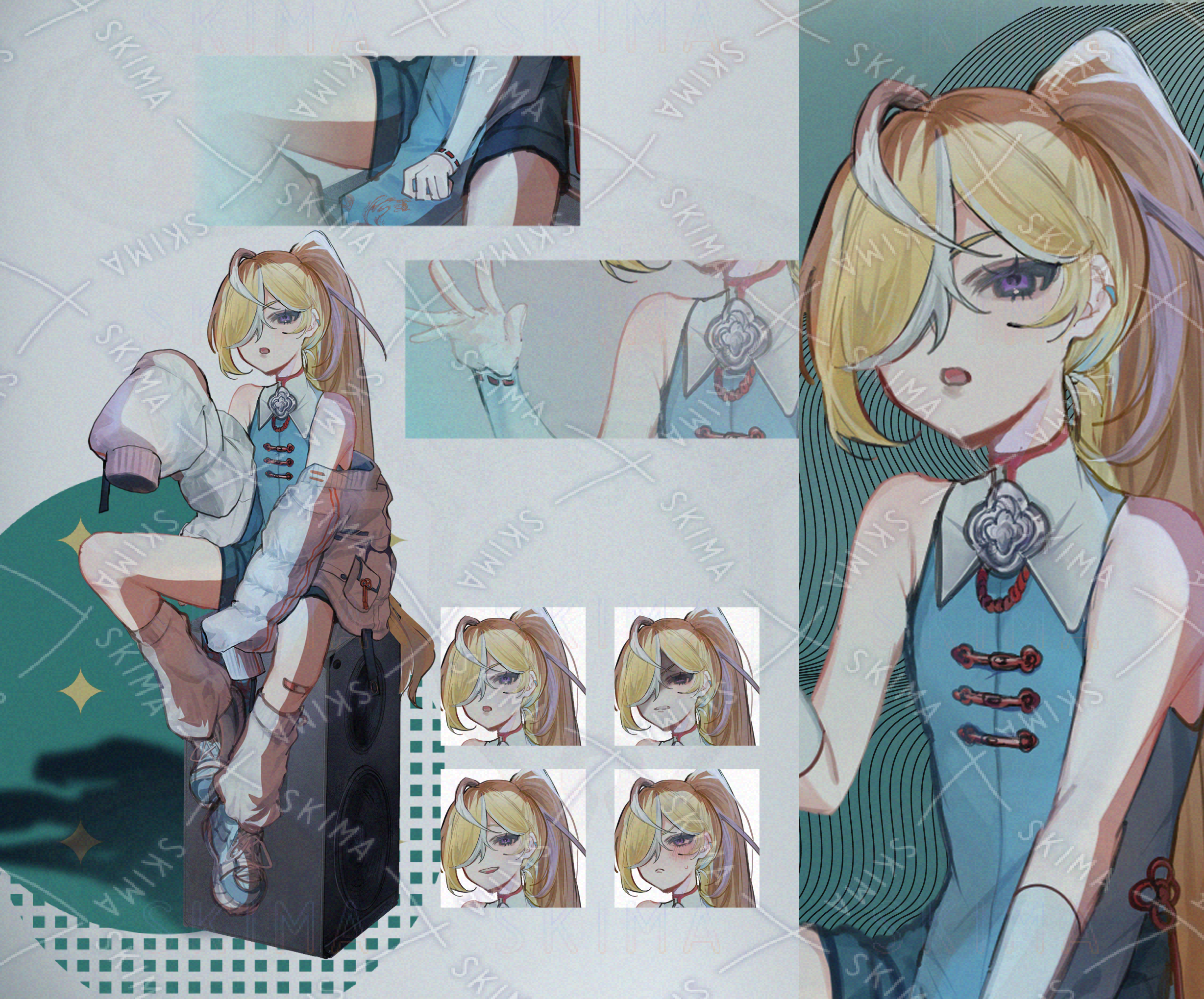 現代チャイナ風男女どちらでも使用できる立ち絵になっております。アウターとスピーカーはおまけとしてつけているため、お好みで付け外し可能です。
