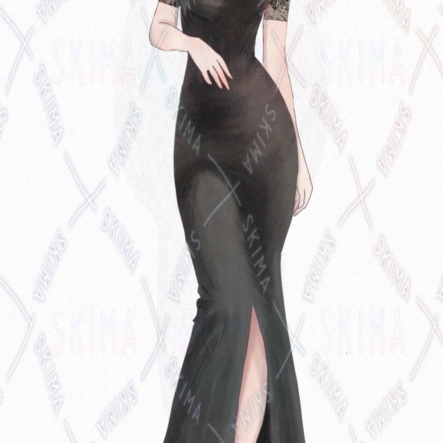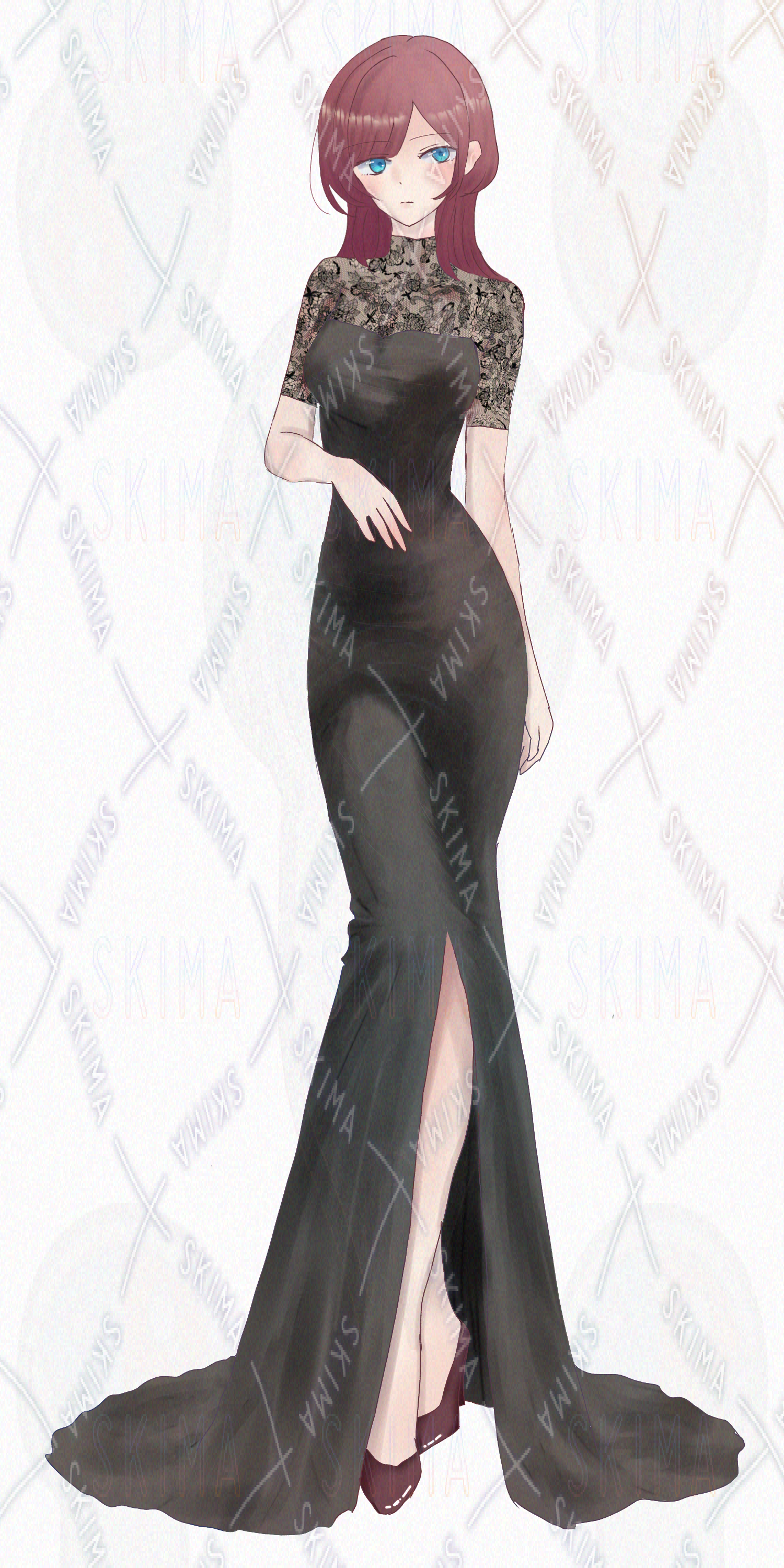 裾が長く、スリットの入ったドレスを着た女の子の立ち絵です