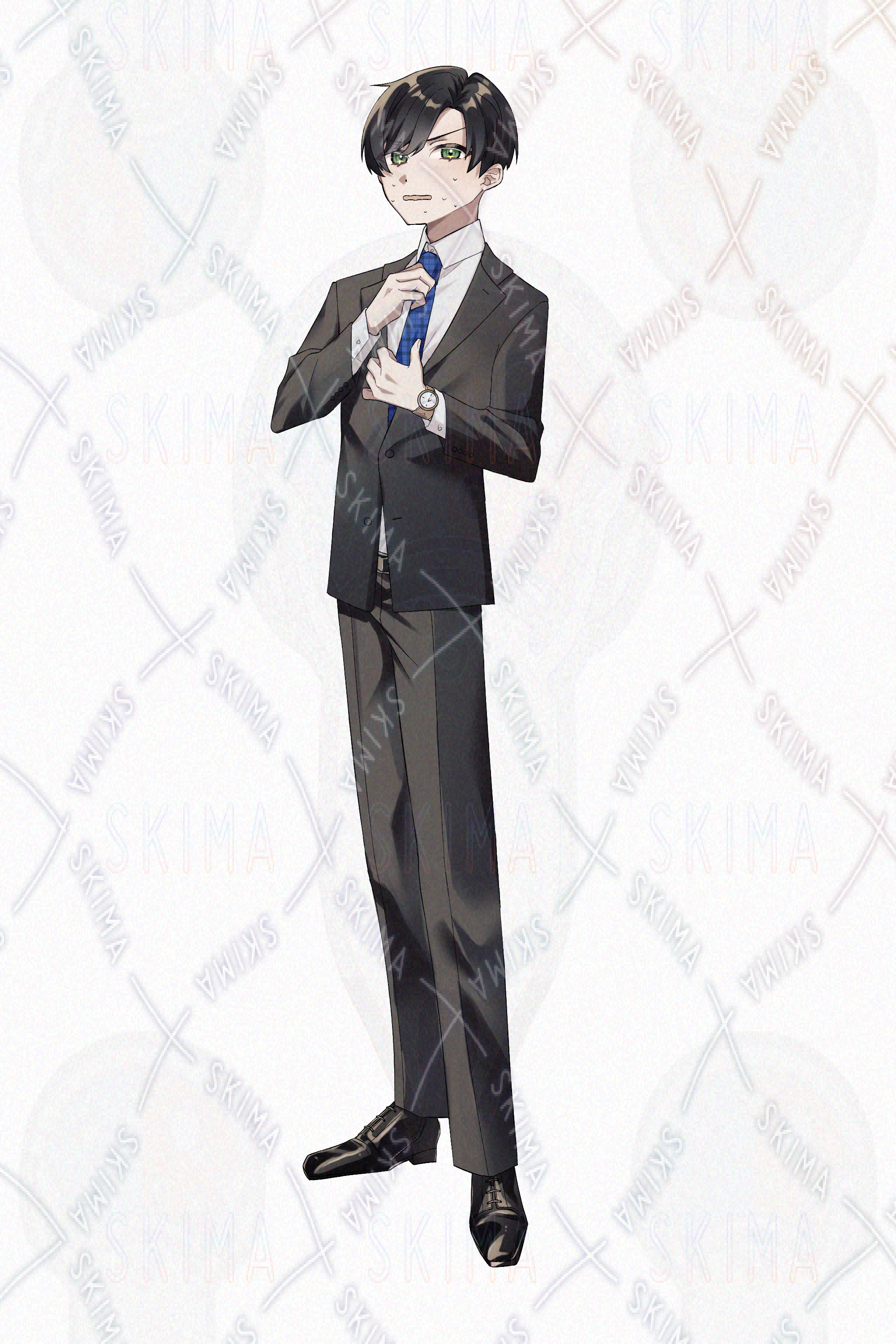 キャラクターデザイン/会社員/TRPG/新入社員/男性/黒髪/かわいい/青/現代/スーツ/リクルート/ギャグ/サラリーマン/短髪/細身/制服