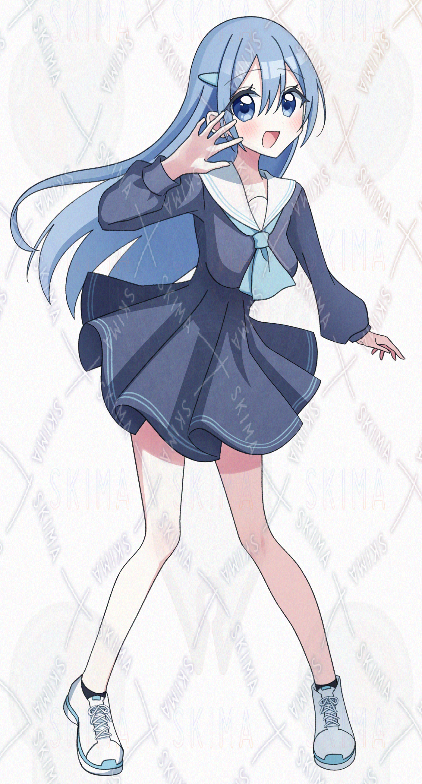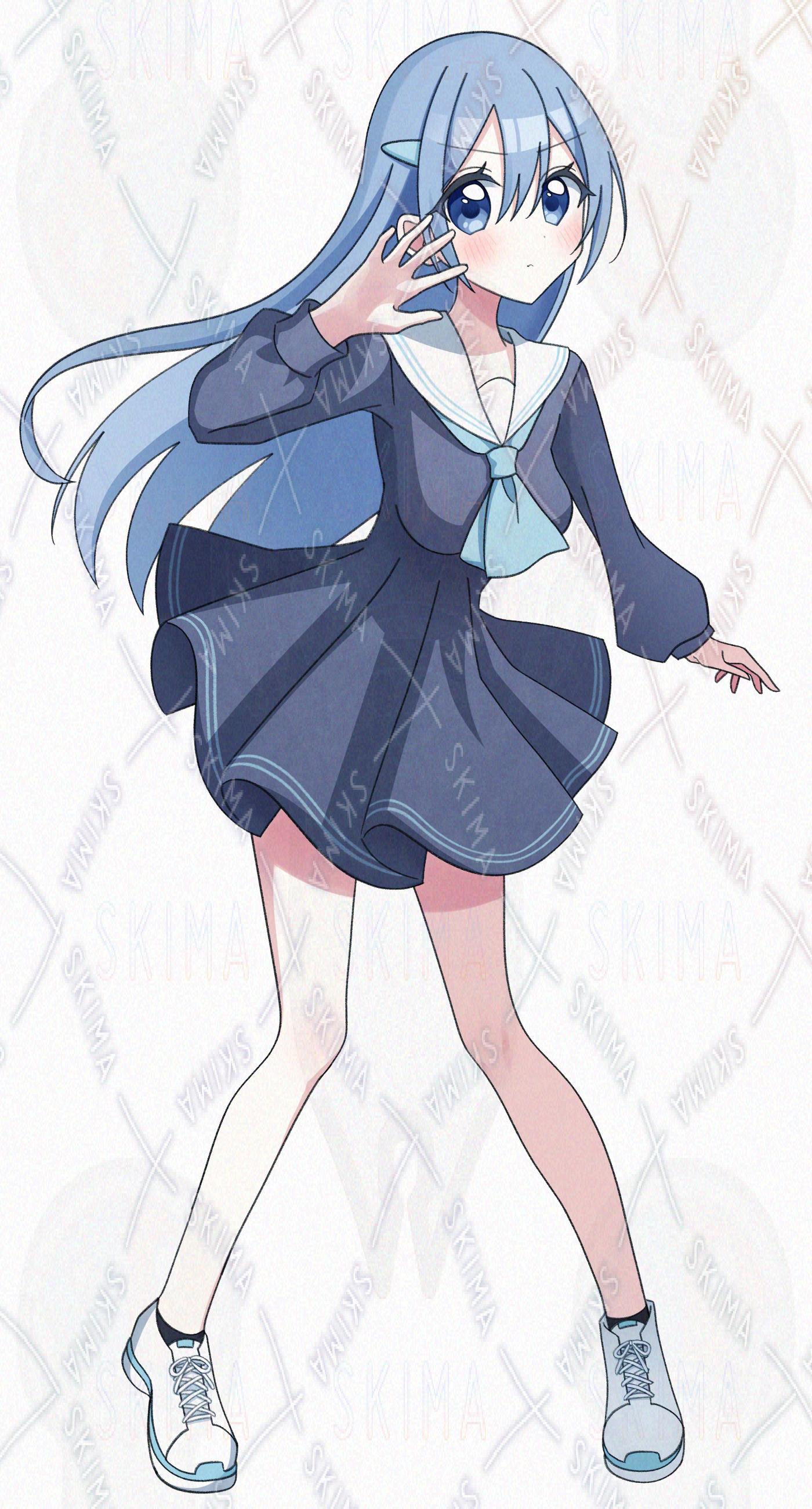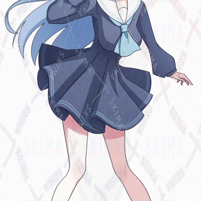 (青髪 ロングヘア 学生服 セーラーワンピース)