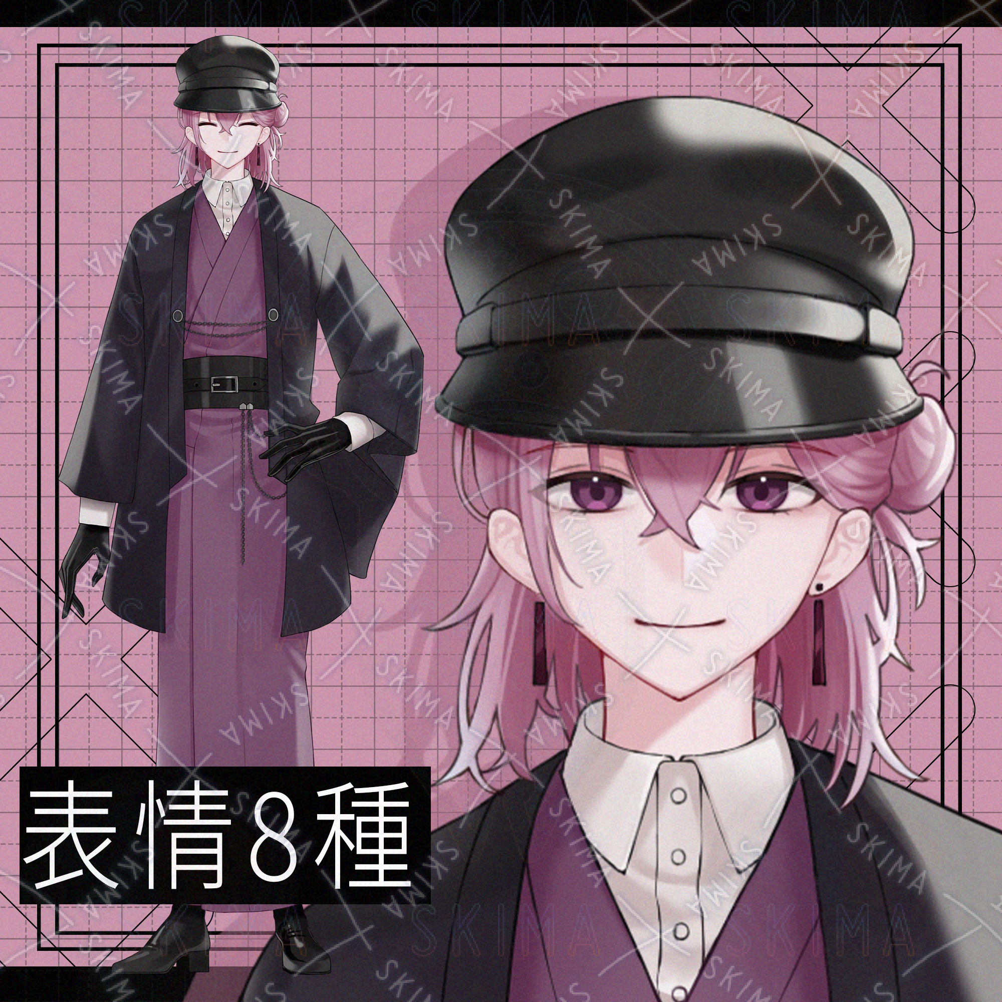 全身立ち絵/ピンク髪/大正ロマン/和服/和装/男性/
