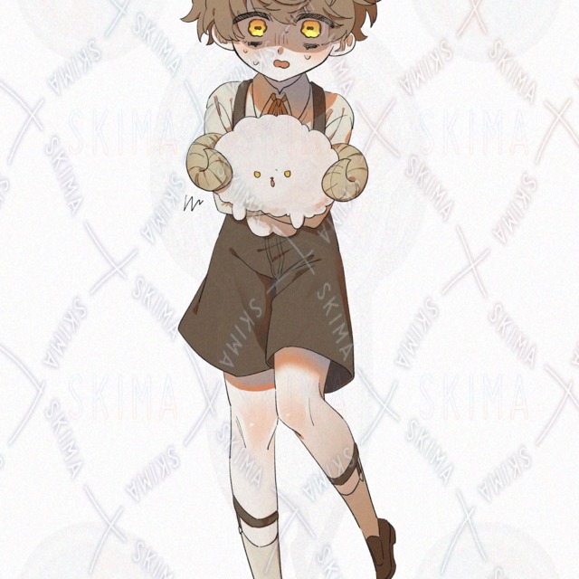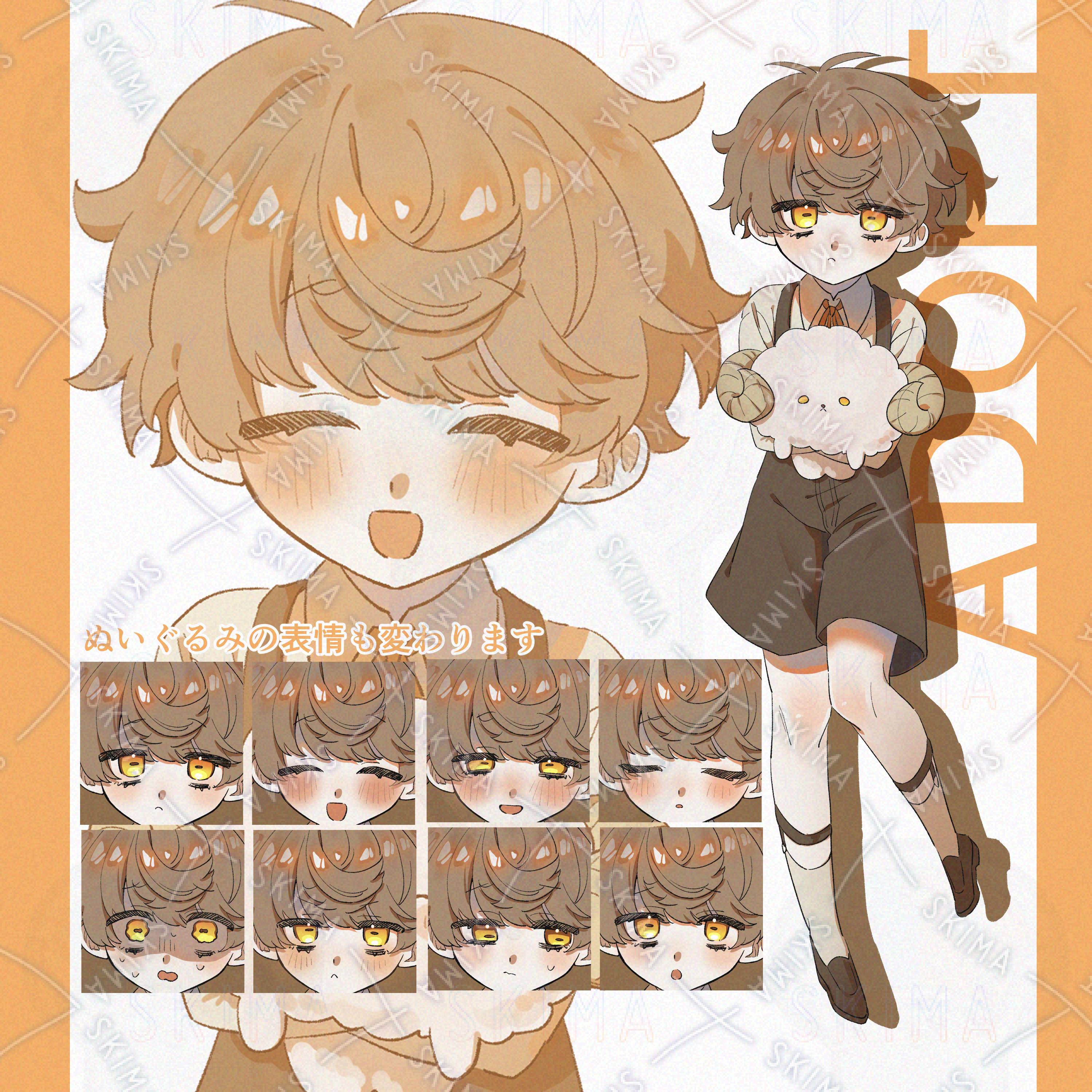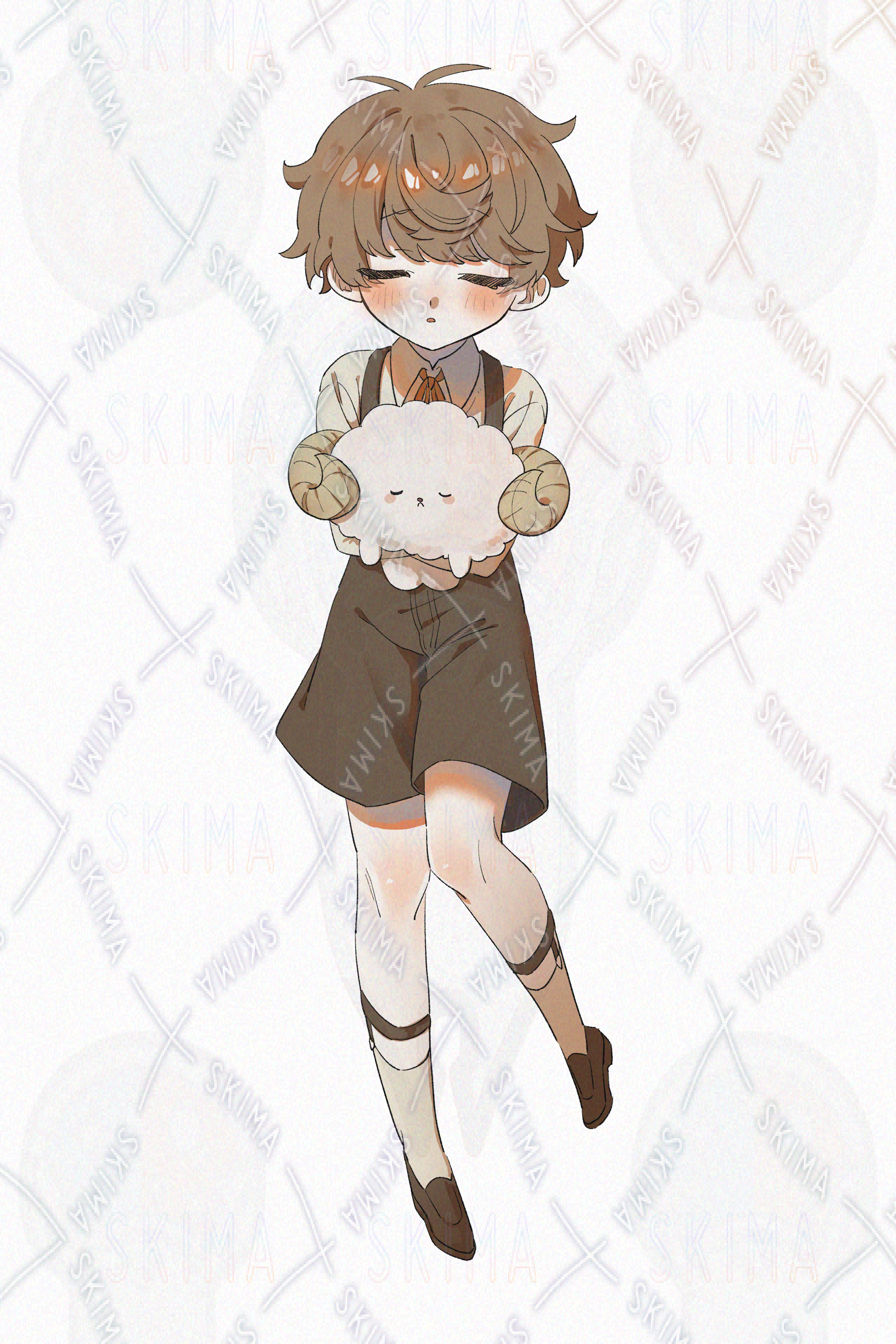 ひつじぬいぐるみを抱きしめている茶色い髪のショタの立ち絵です。