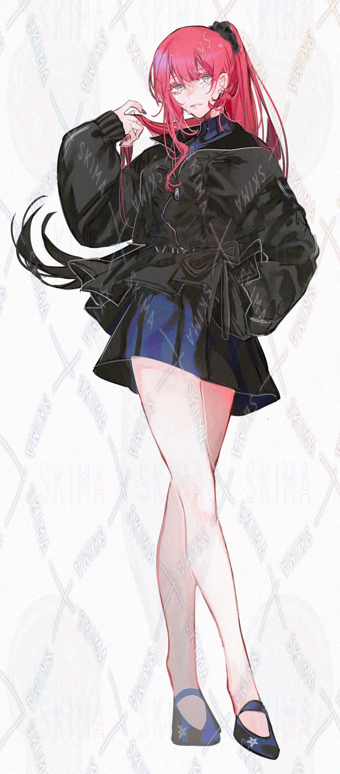 ポニテグラデカラーの女の子【全身立ち絵+表情差分3種】