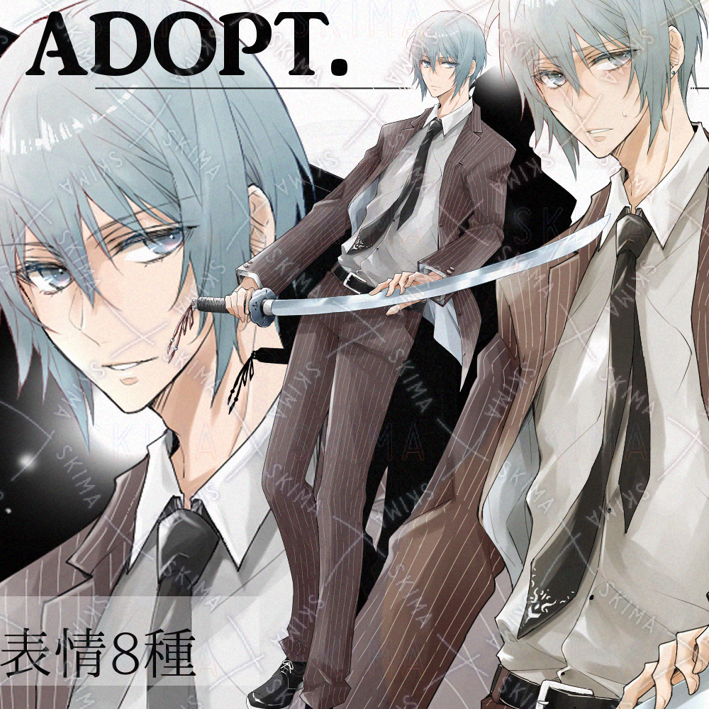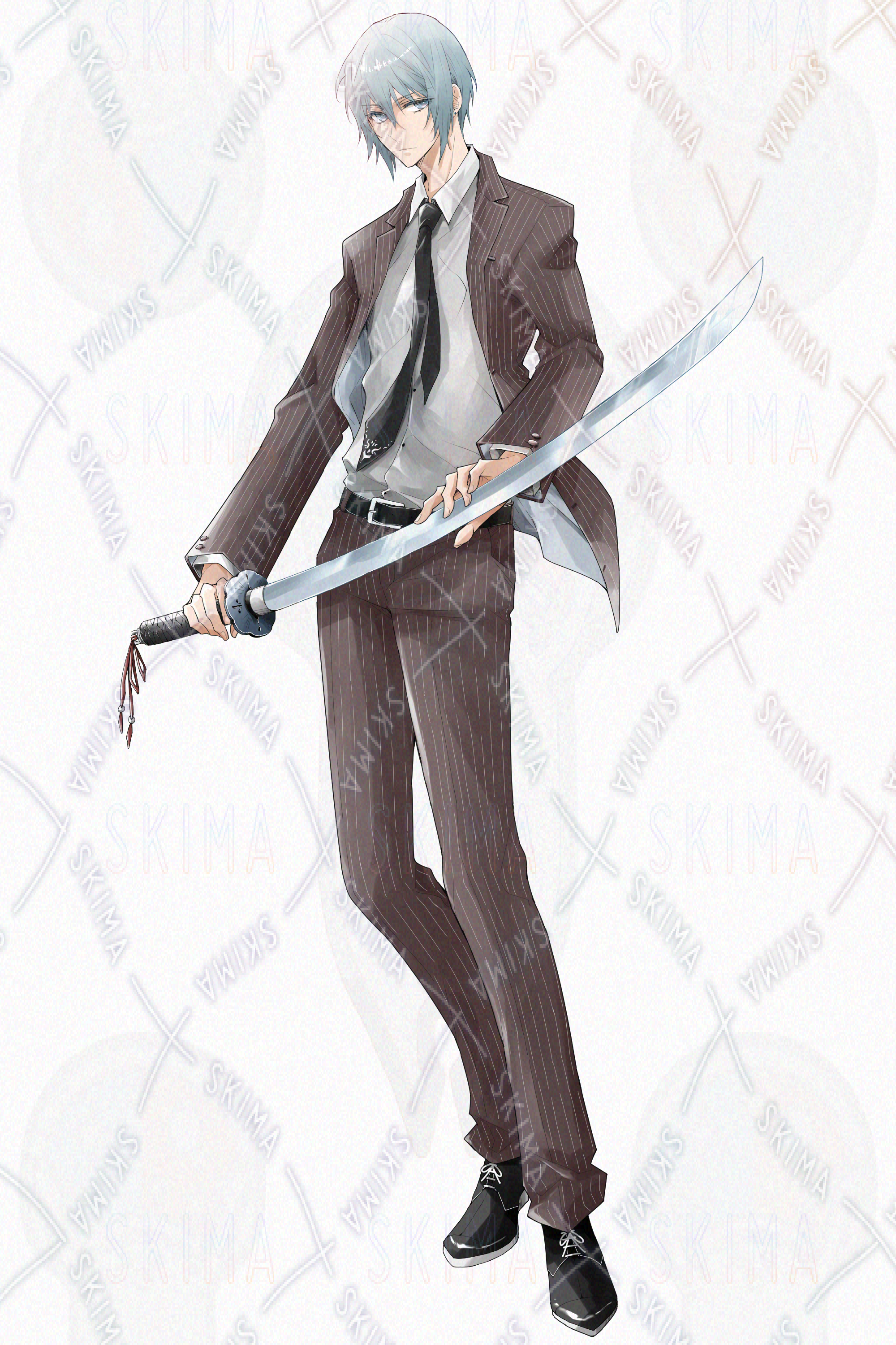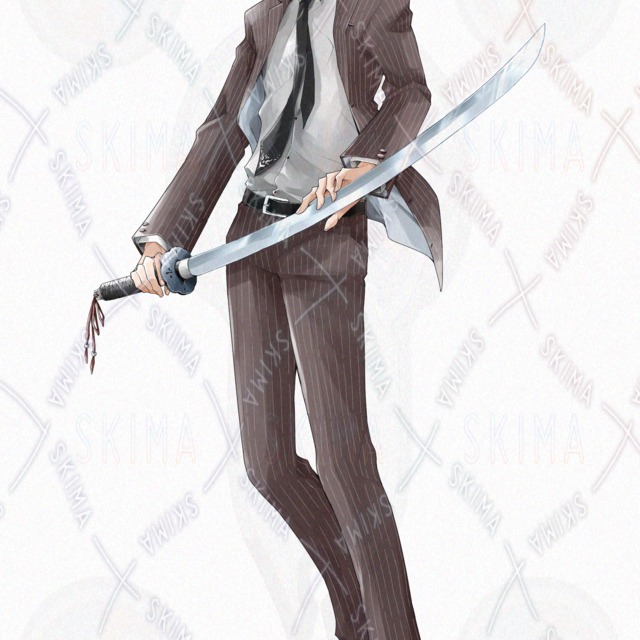 TRPGや配信等にご使用できる、日本刀を持ったスーツの男性立ち絵です。