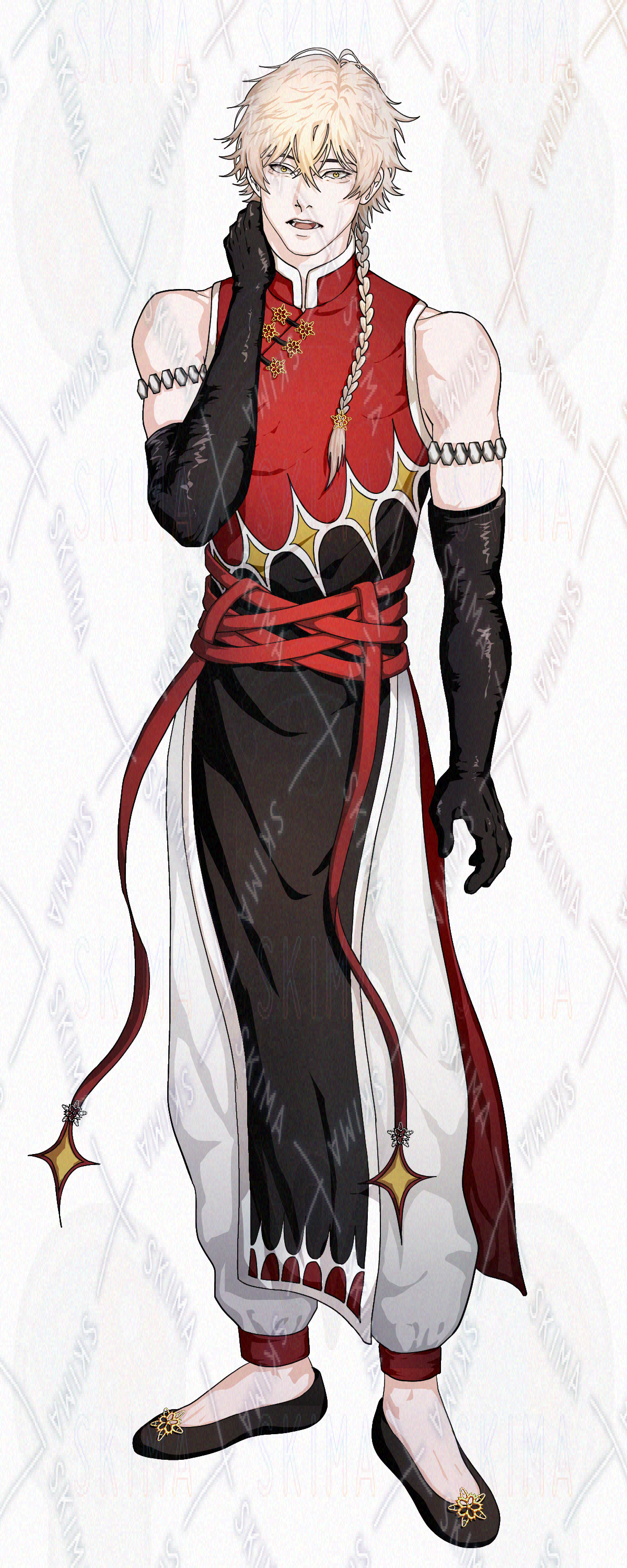 (検索用キャラ要素:男子・チャイナ・長髪・三つ編み・金髪・ロングヘア・金目・カンフー・革手袋・民族)
