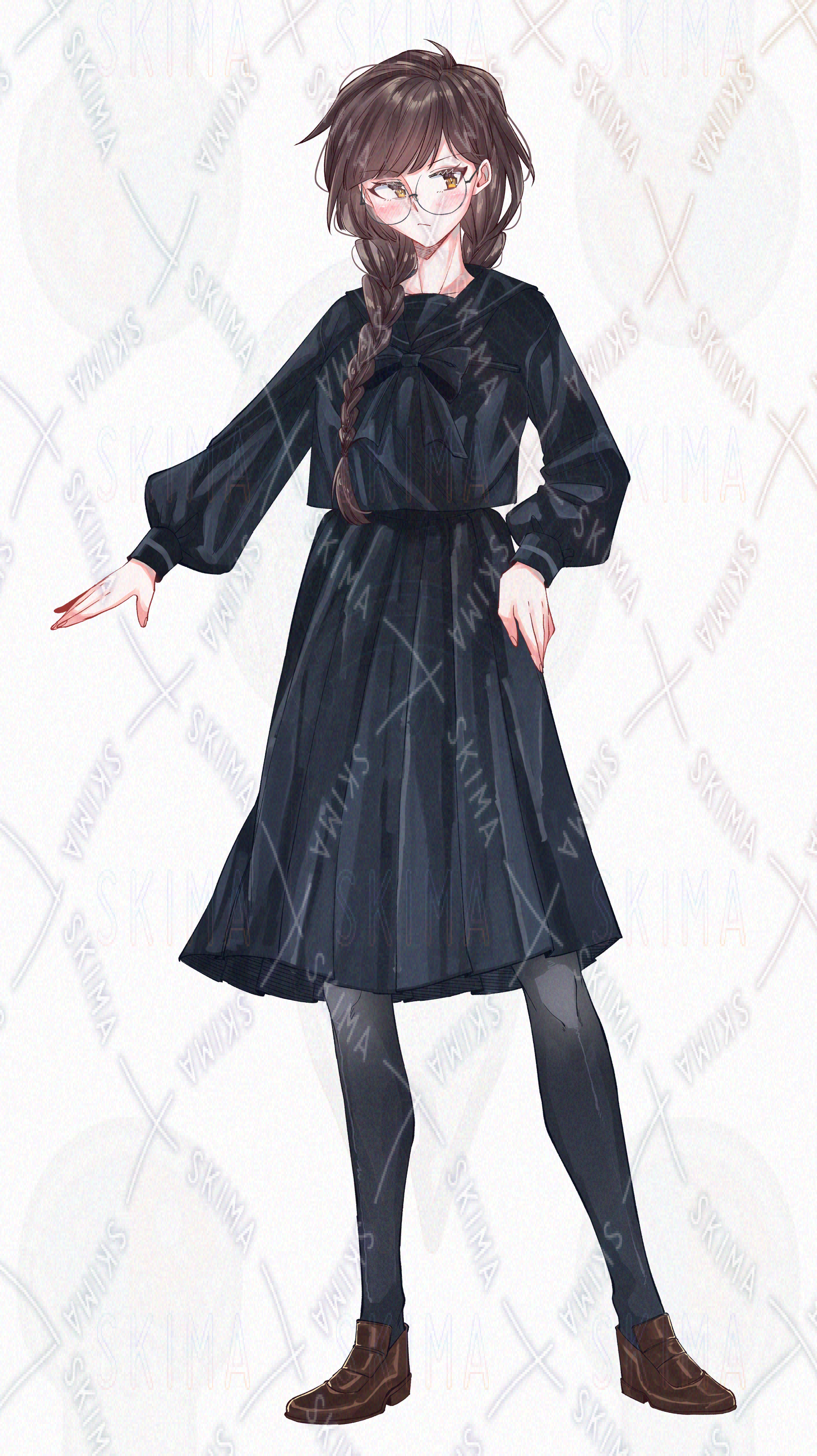 セーラー服/女子高生/学生/眼鏡/三つ編み/おさげ/立ち絵/TRPG/ぱっつん/黒セーラー/タイツ/委員長/真面目