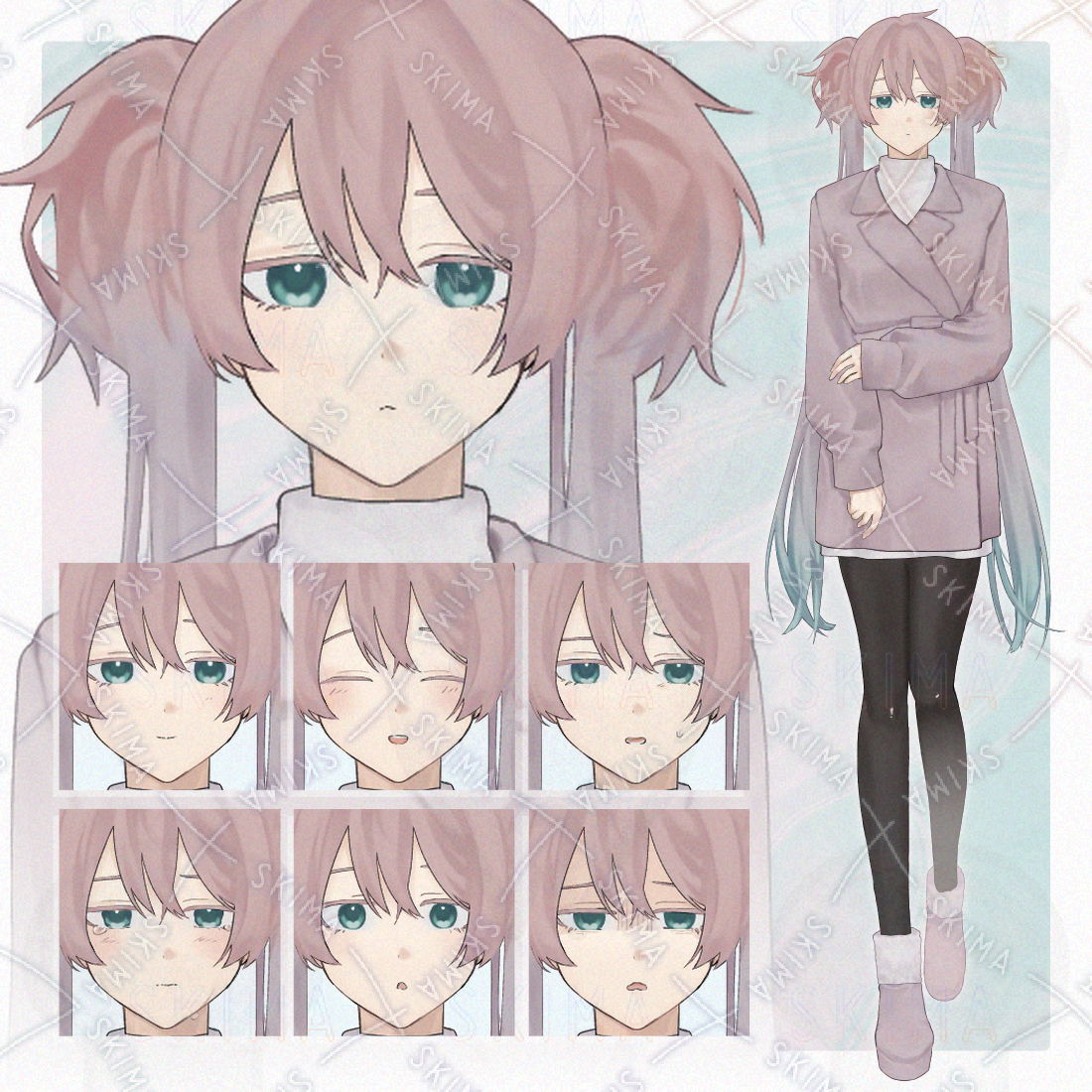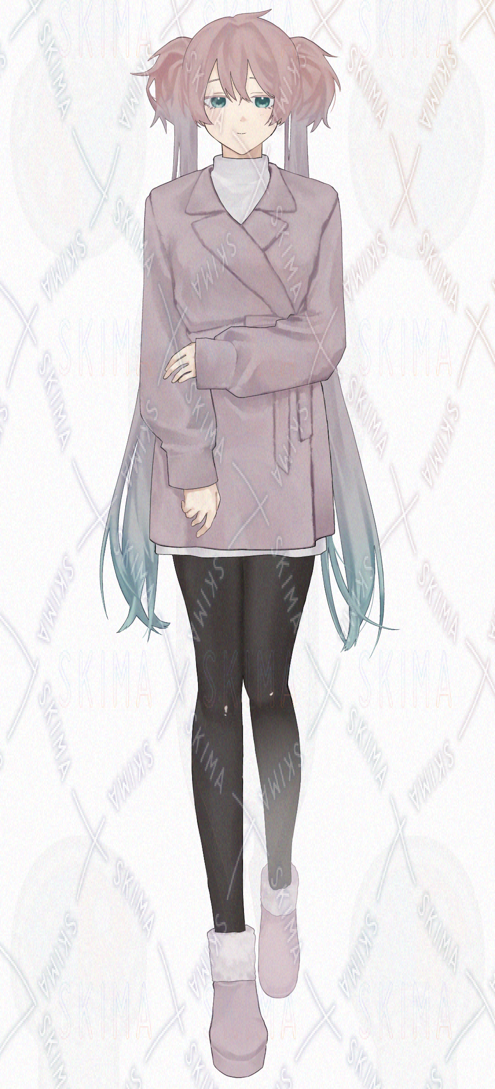 女の子/薄いピンク/ツインテール/コート