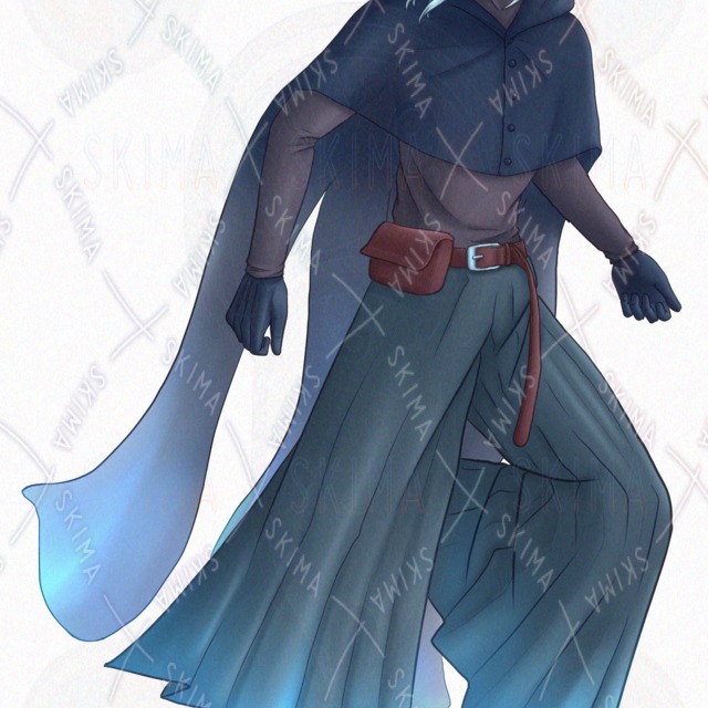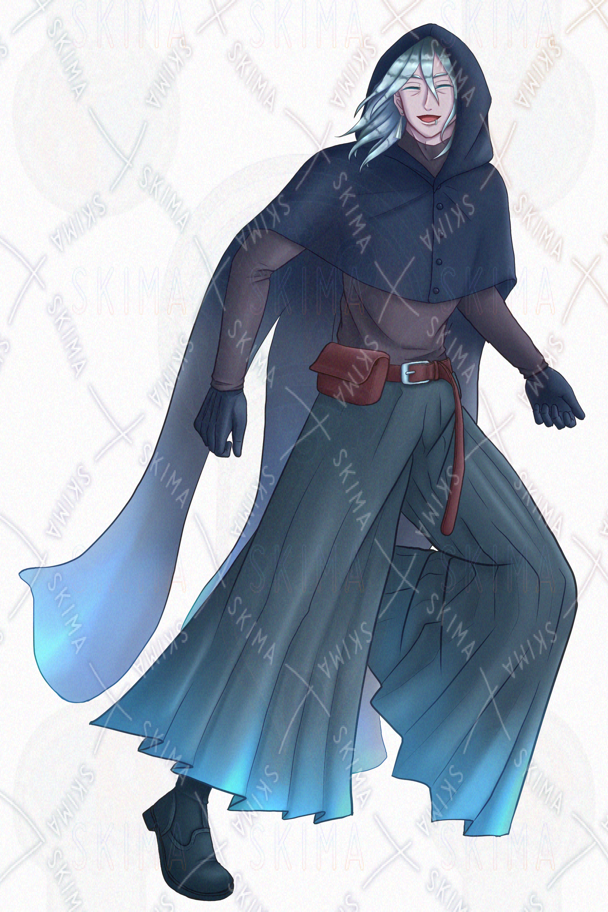 暗殺者 / 口ピアス / 青年 / 壮年 / 暗い / クラゲ / 血痕 / フード / マント / 銀髪 / 不穏 / 武器 / ファンタジー