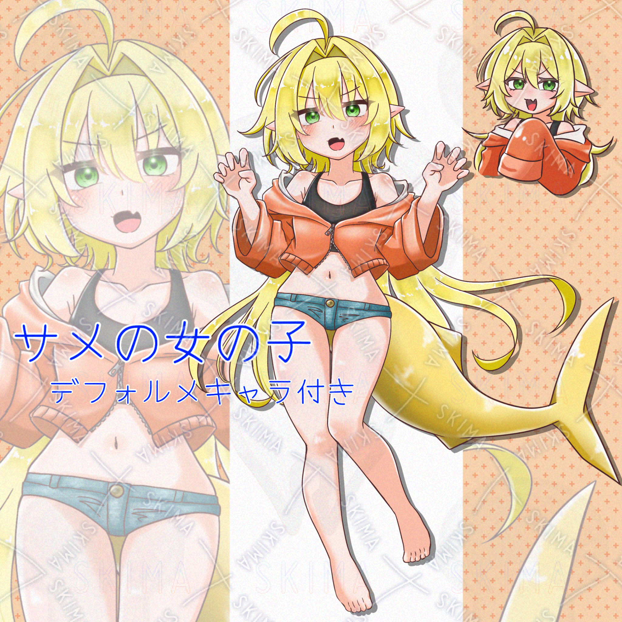 #立ち絵販売 #キャラクター販売 #オリジナルキャラクター #販売イラスト #等身キャラ #女の子 #10代キャラ #元気系女子 #ヘソ出し女子 #サメ #パーカー女子 #カジュアル #しっぽ #金髪 #ウルフカット #クラゲカット #海 #ミニキャラ #TRPG立ち絵 #配信用立ち絵 #Vtuber立ち絵 #動画用イラスト