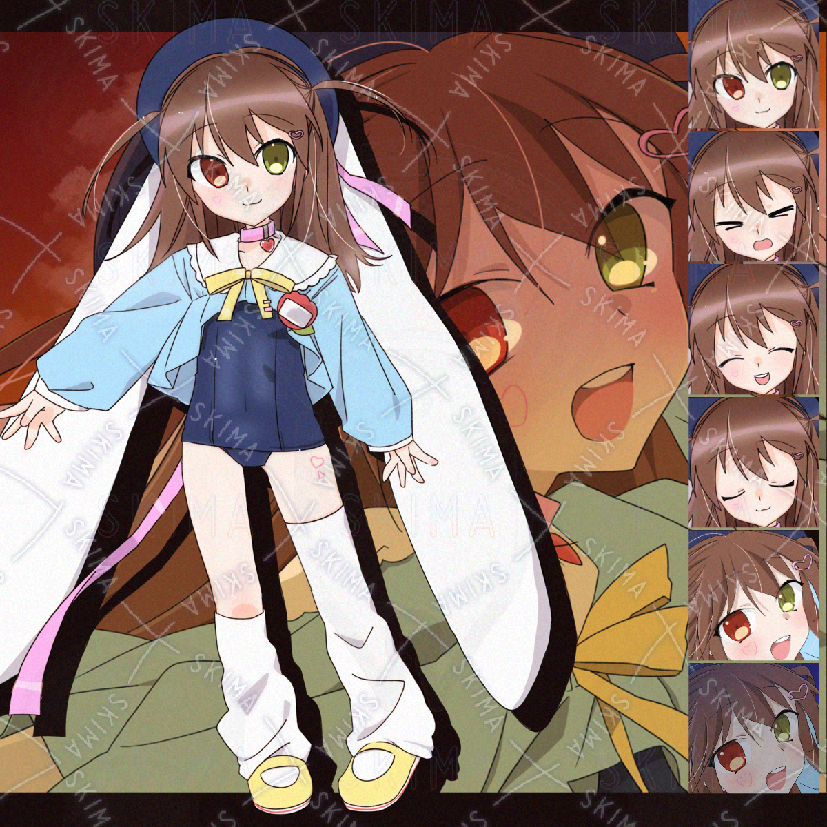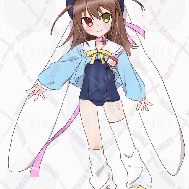 【一枚絵付属】スク水スモックでオッドアイなウサギっ子