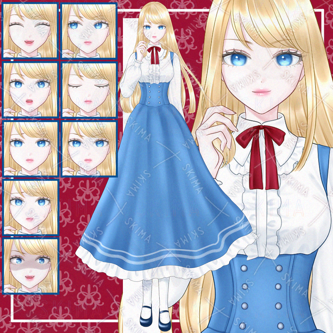 【表情10種】金髪の女性の全身立ち絵
