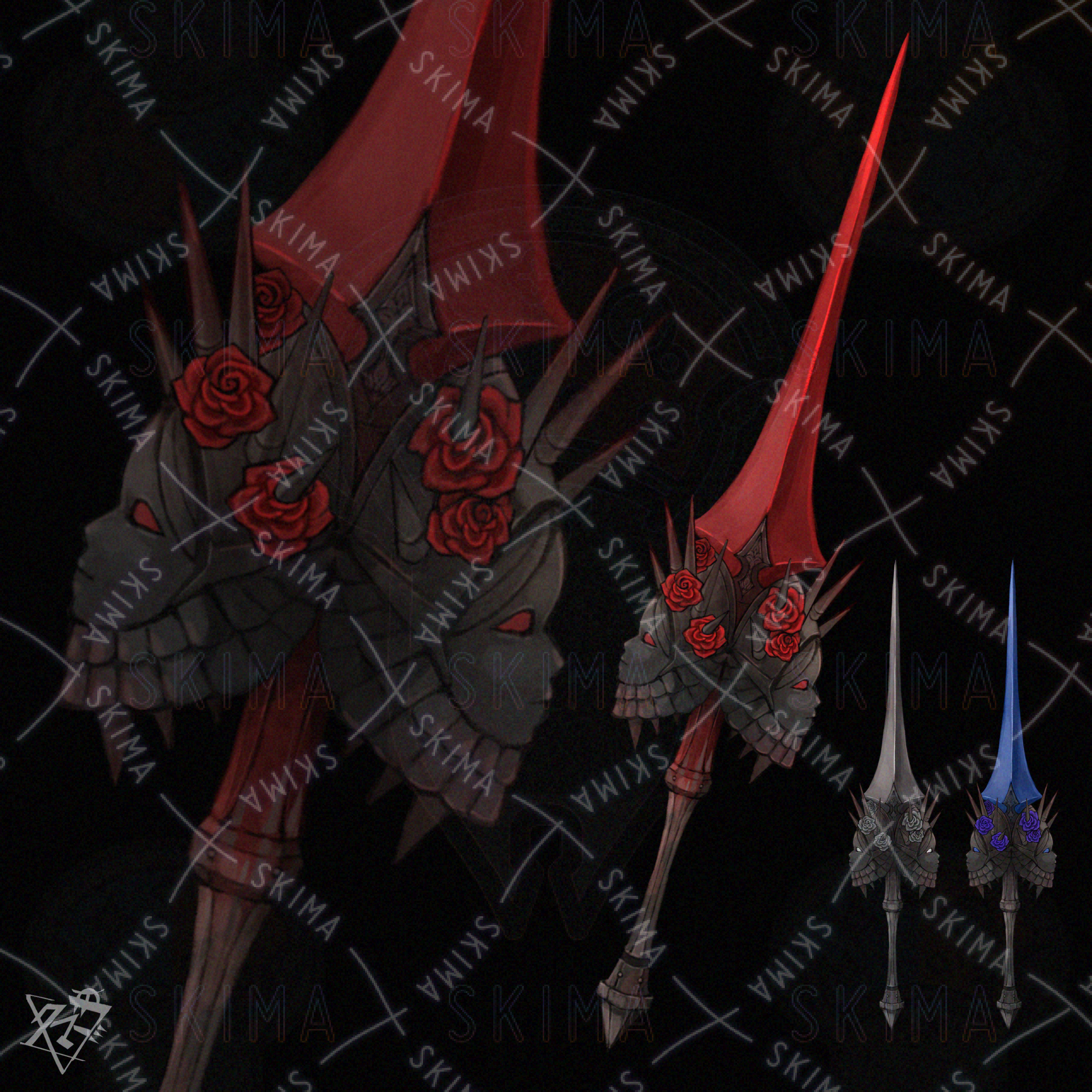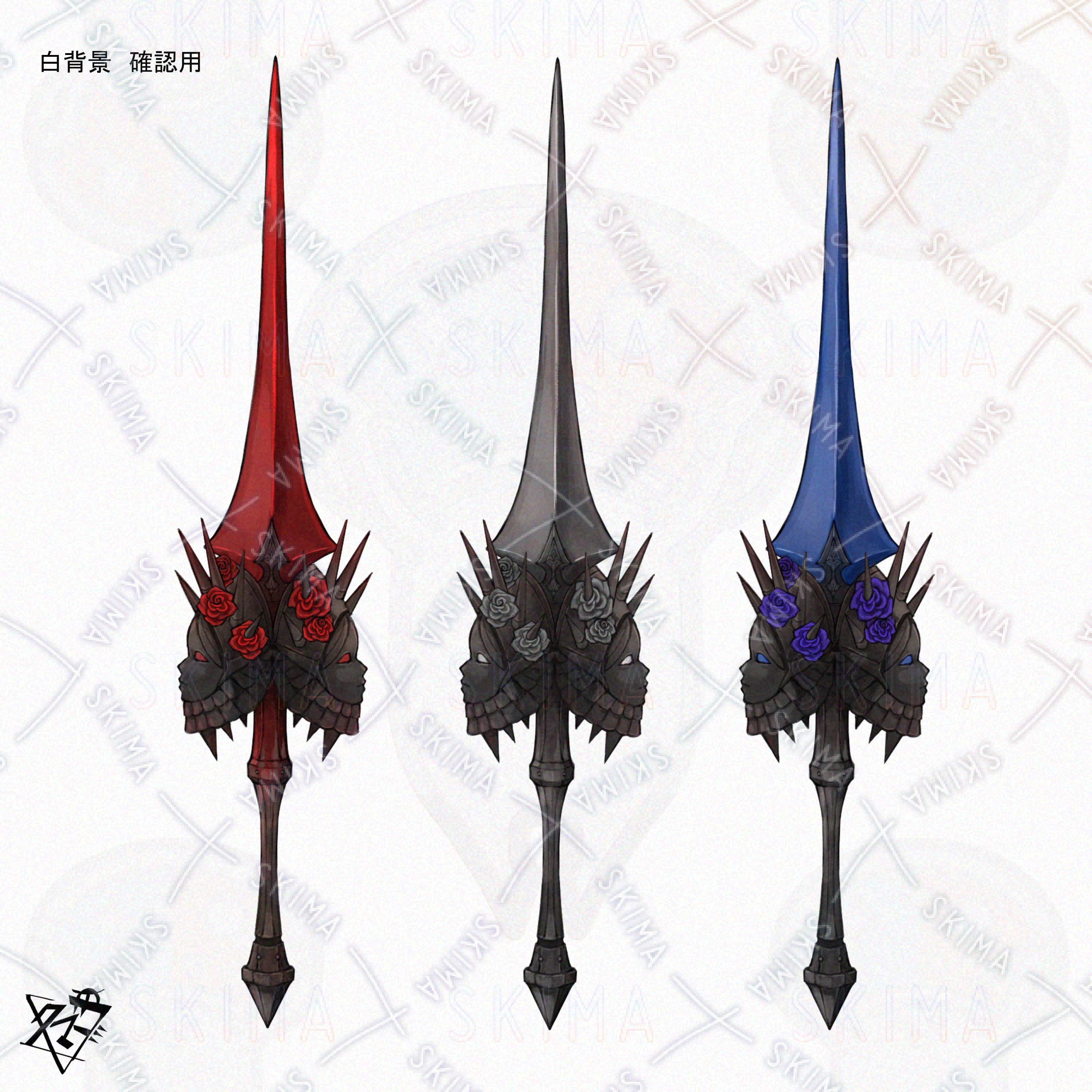 新規キャラ立ち絵・三面図・武器図面・設定画の作成をご依頼させていただきました。