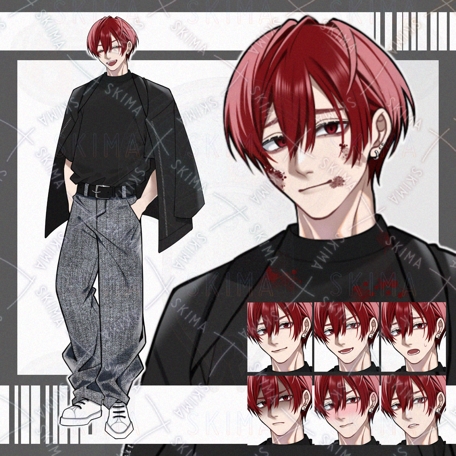 ★【立ち絵】赤髪/男性キャラ【表情8種】