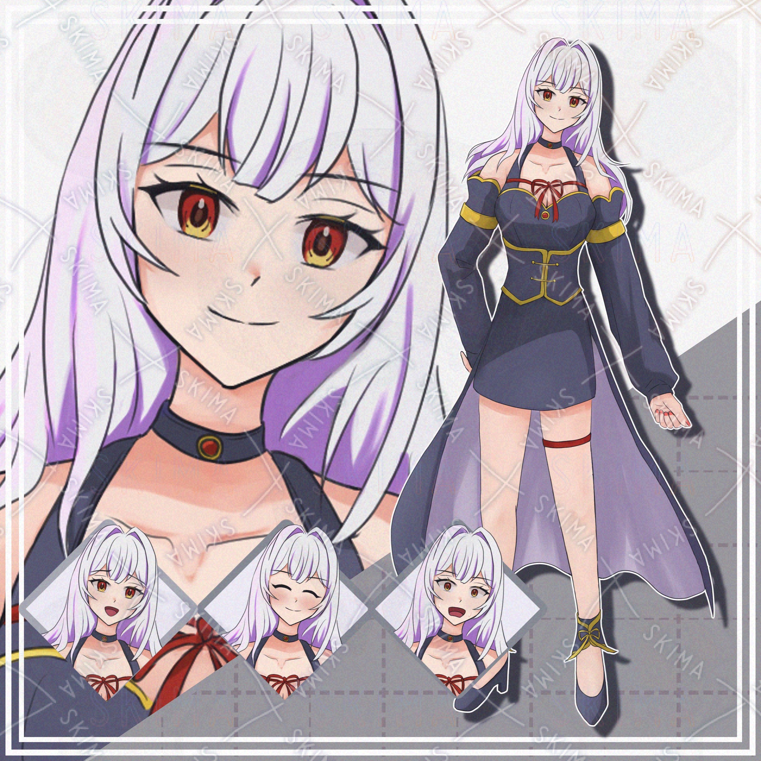 【表情10種】白髪ロングの女性【立ち絵】