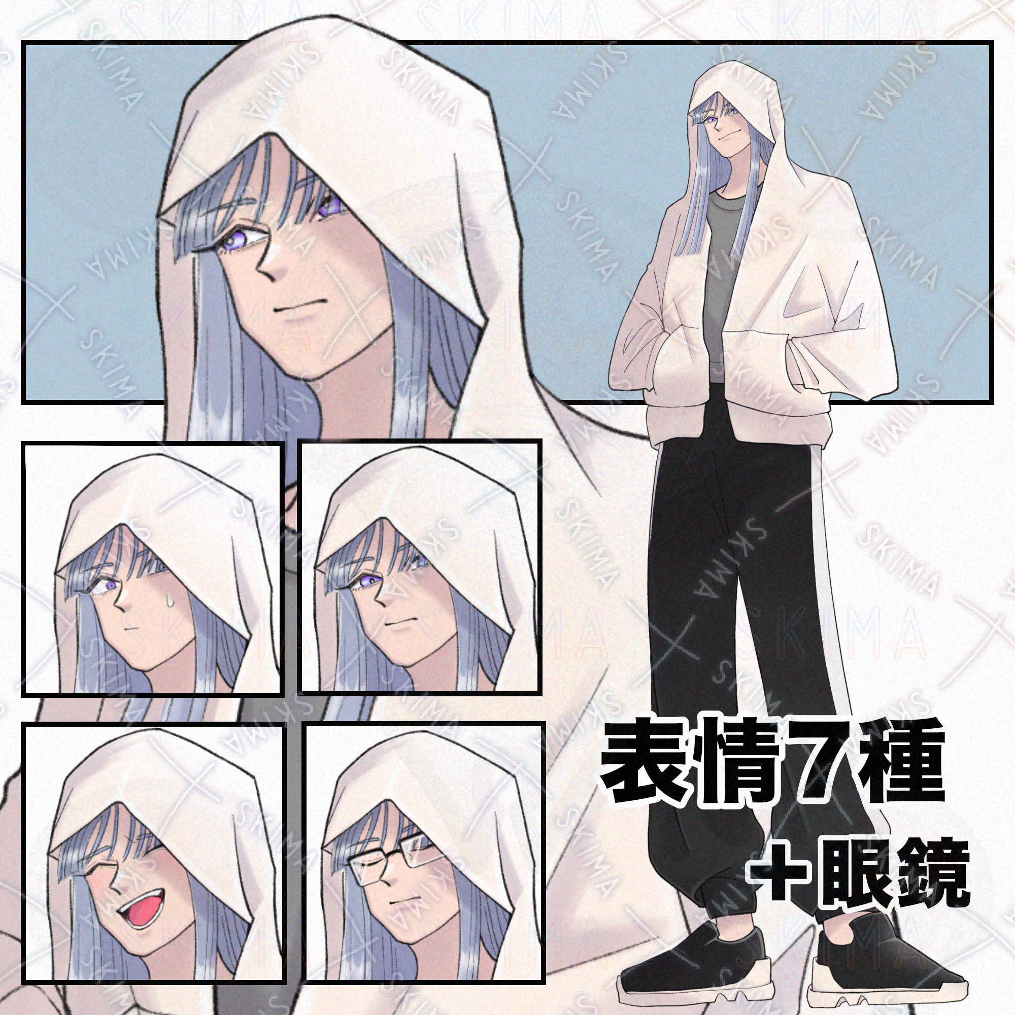 【表情7種+眼鏡】フードの男性