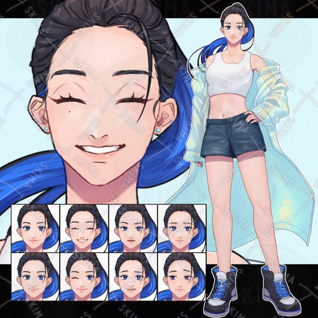 立ち絵1枚+表情6種 通常、目閉じ、喜、怒、哀、楽、呆れ、眼鏡着脱用