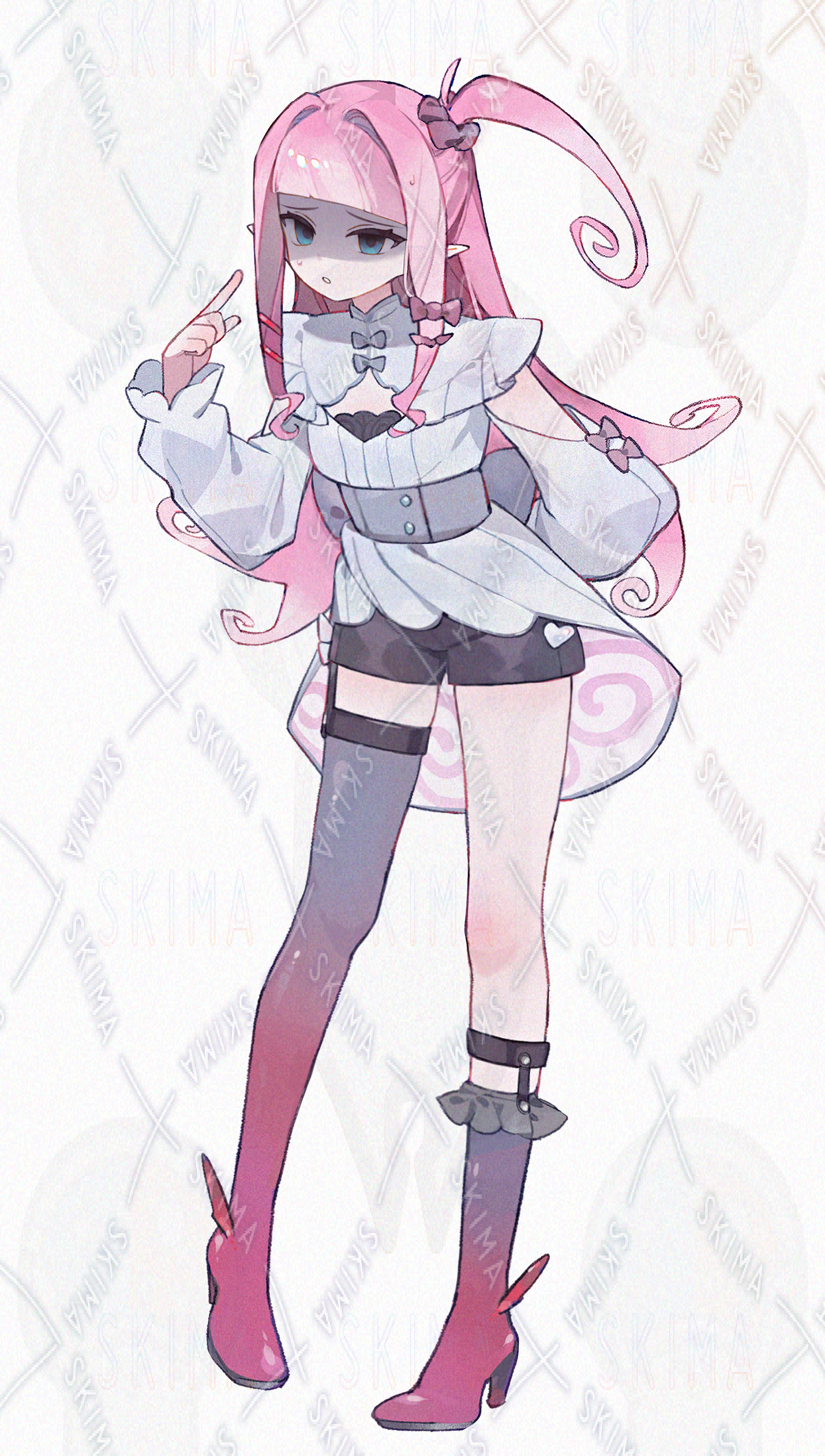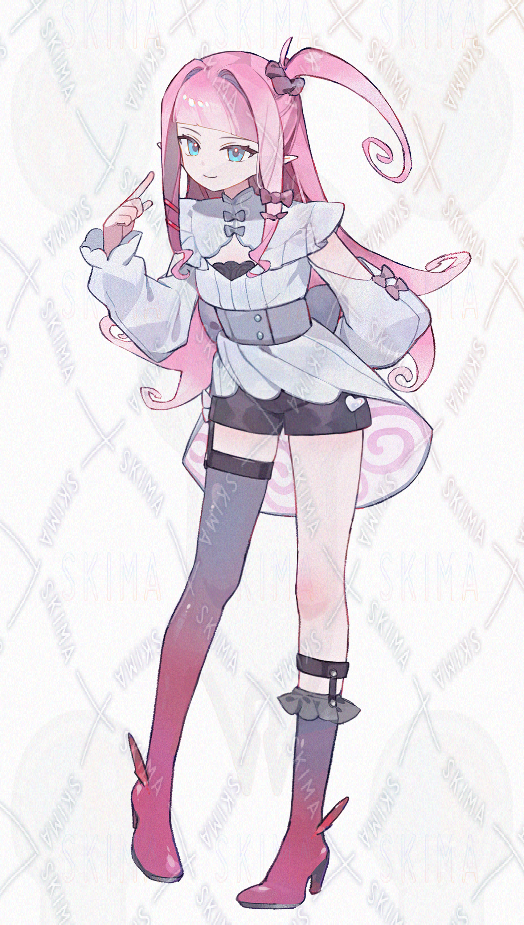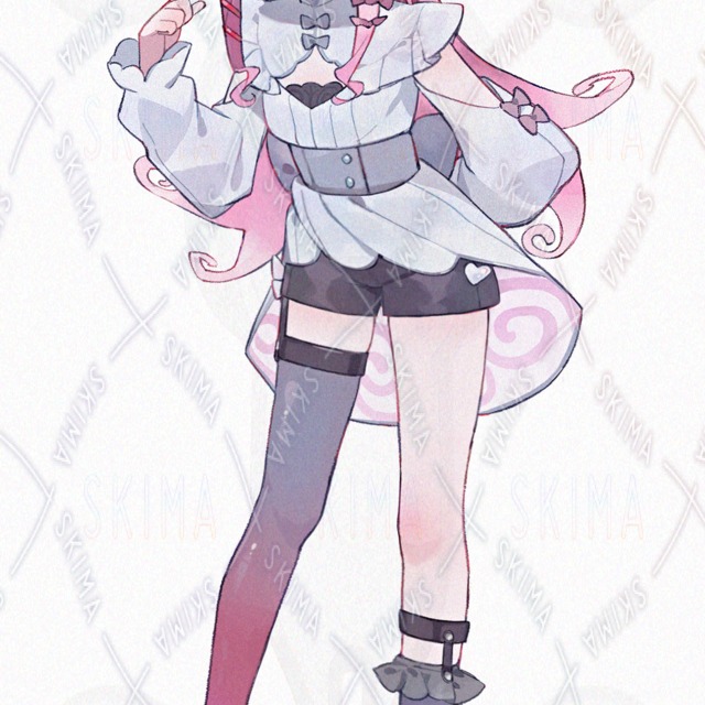 検索用:キャラ販売/立ち絵販売/adopt/魔族/小悪魔/アシメバング/ピンク髪/サイドテール/角