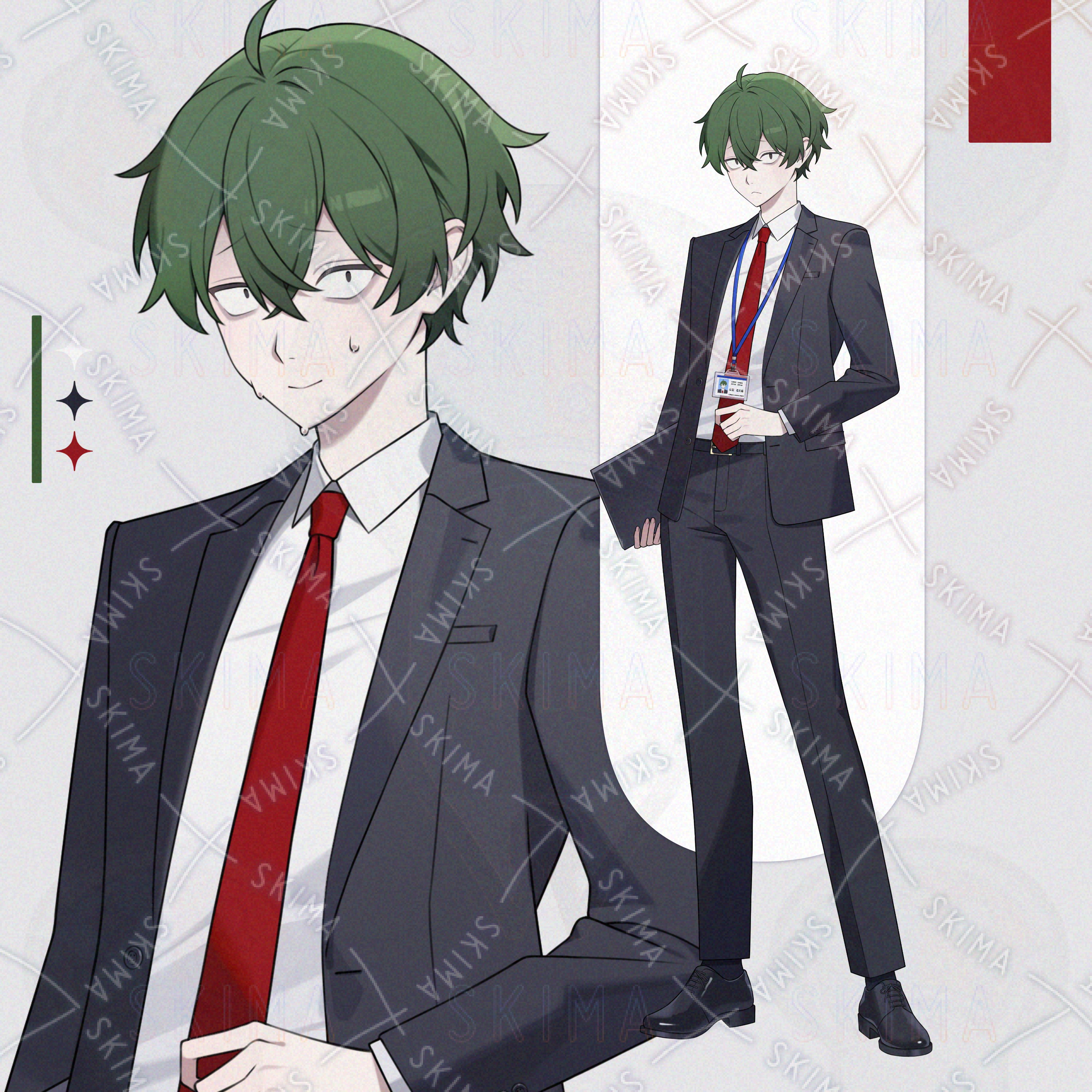 緑髪/三白眼/スーツ/クマ