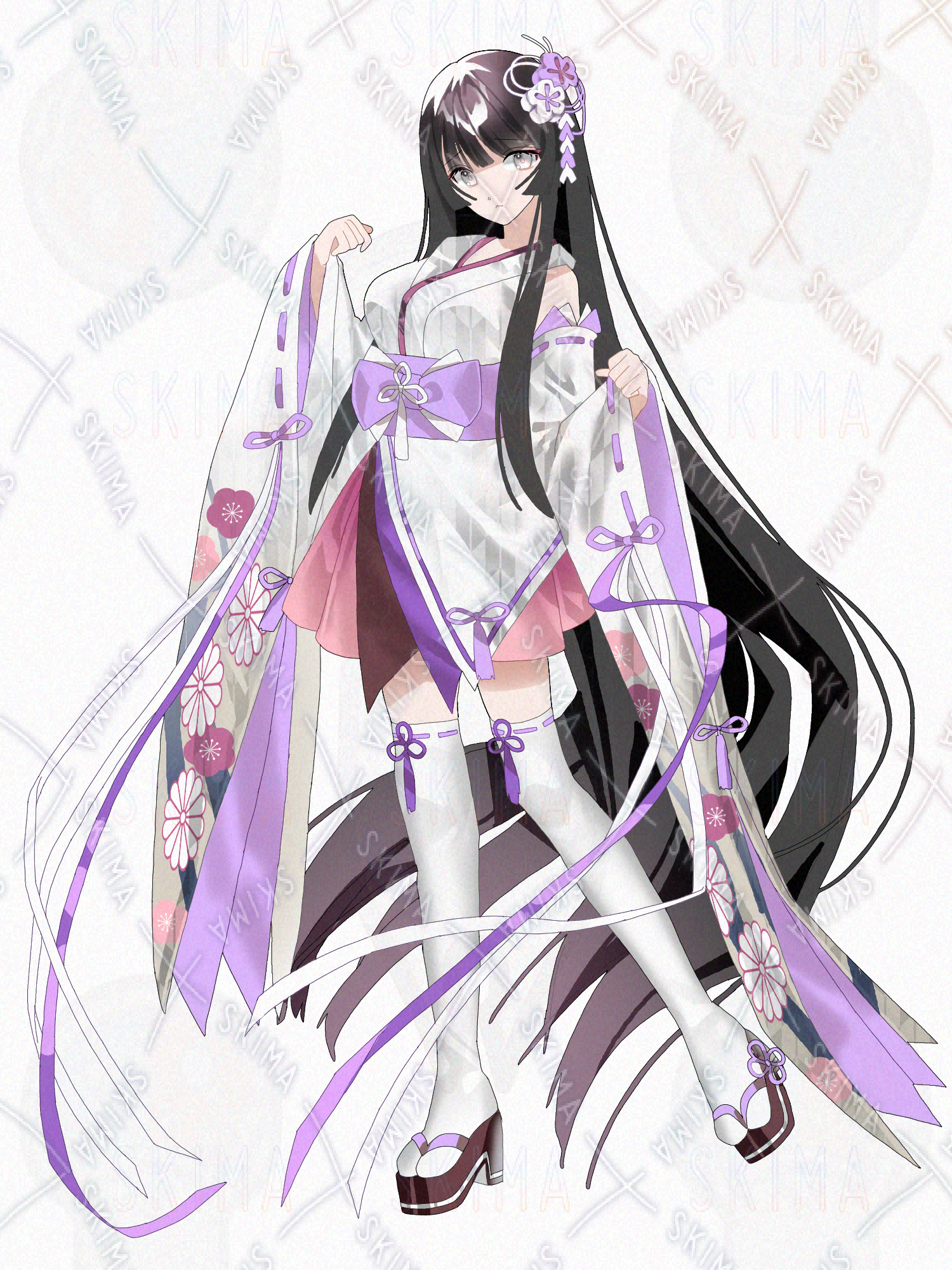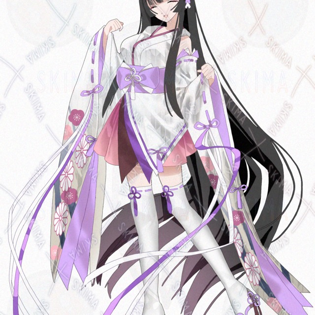 白、紫、ピンク、黒髪、ロングヘアー、長髪、和風、姫カット