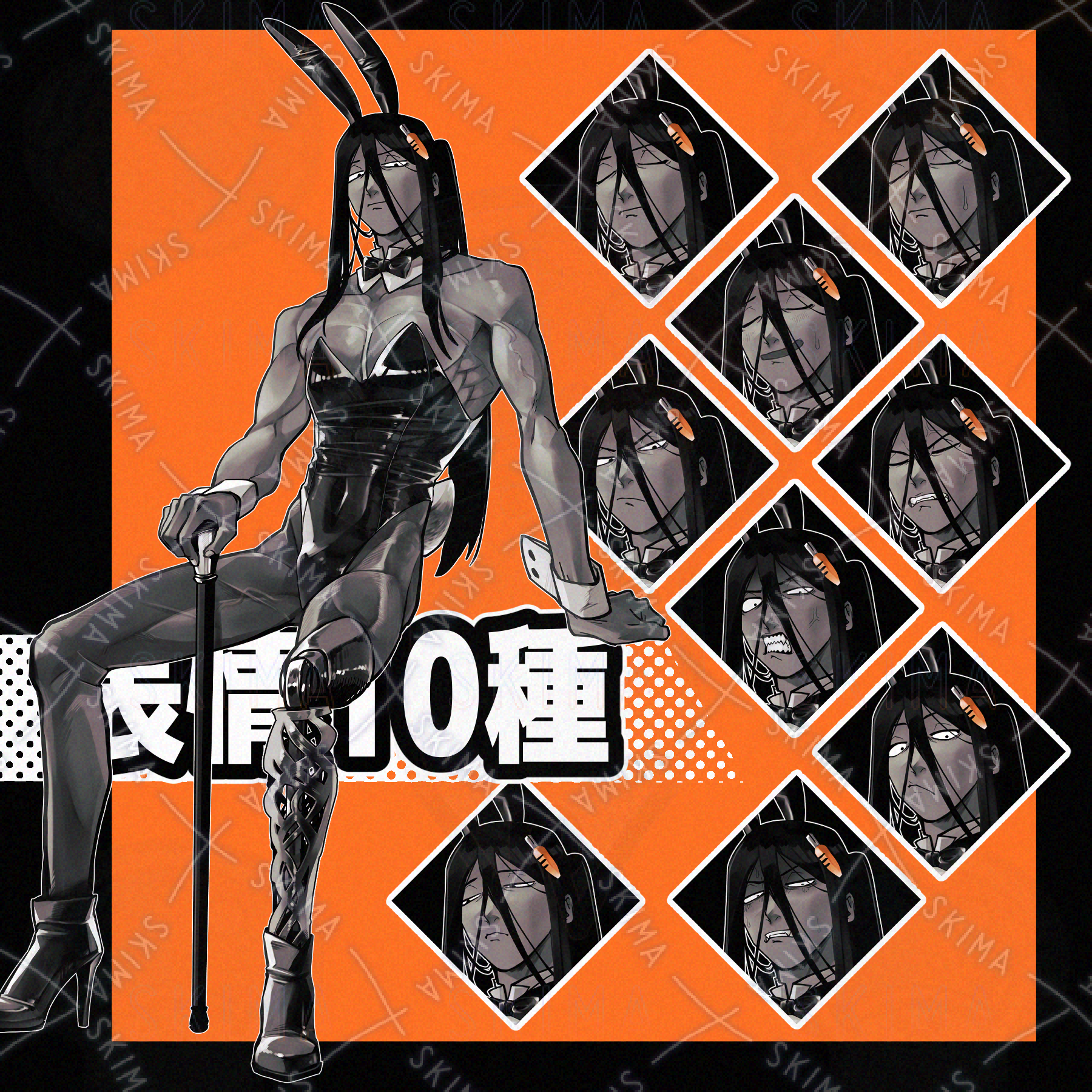 顔芸しないタイプのバニー衣装男性【表情10種】
