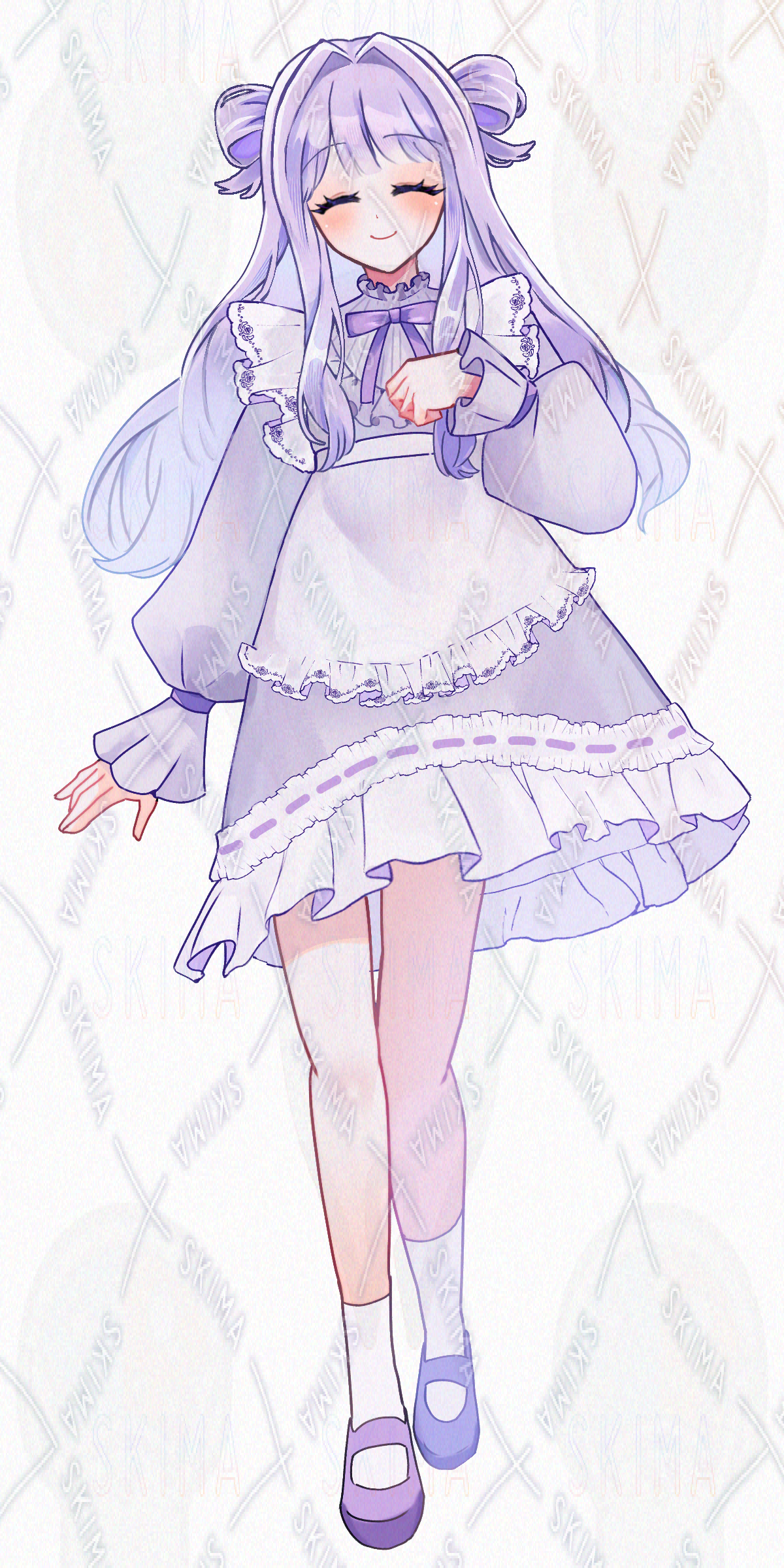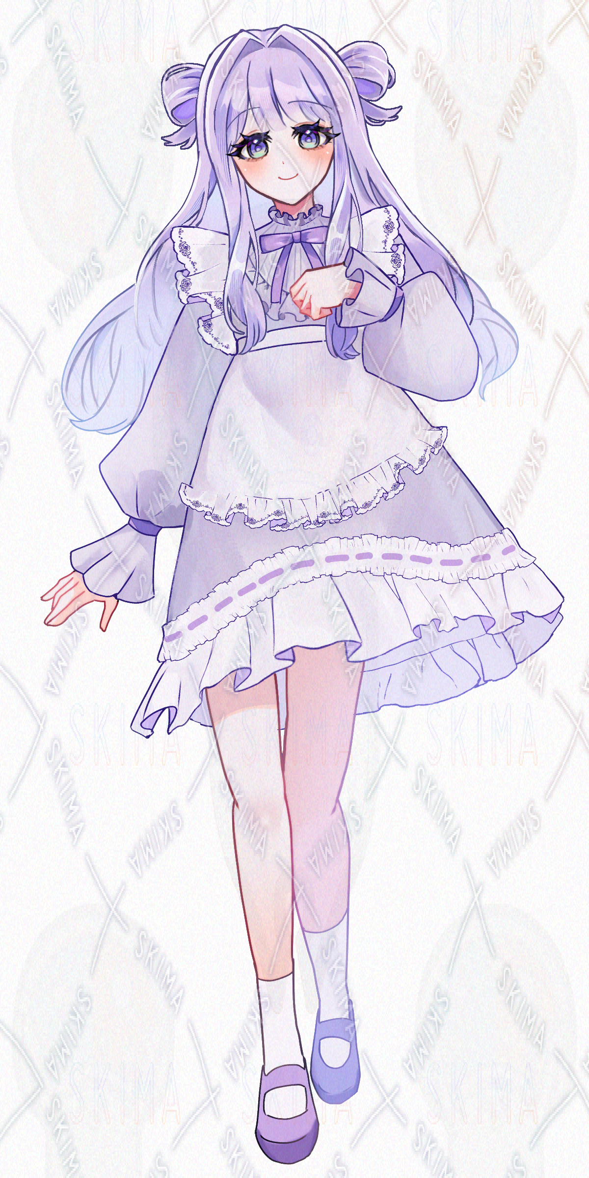 角/少女/紫/ワンピース/フリル/メイド/たれ目