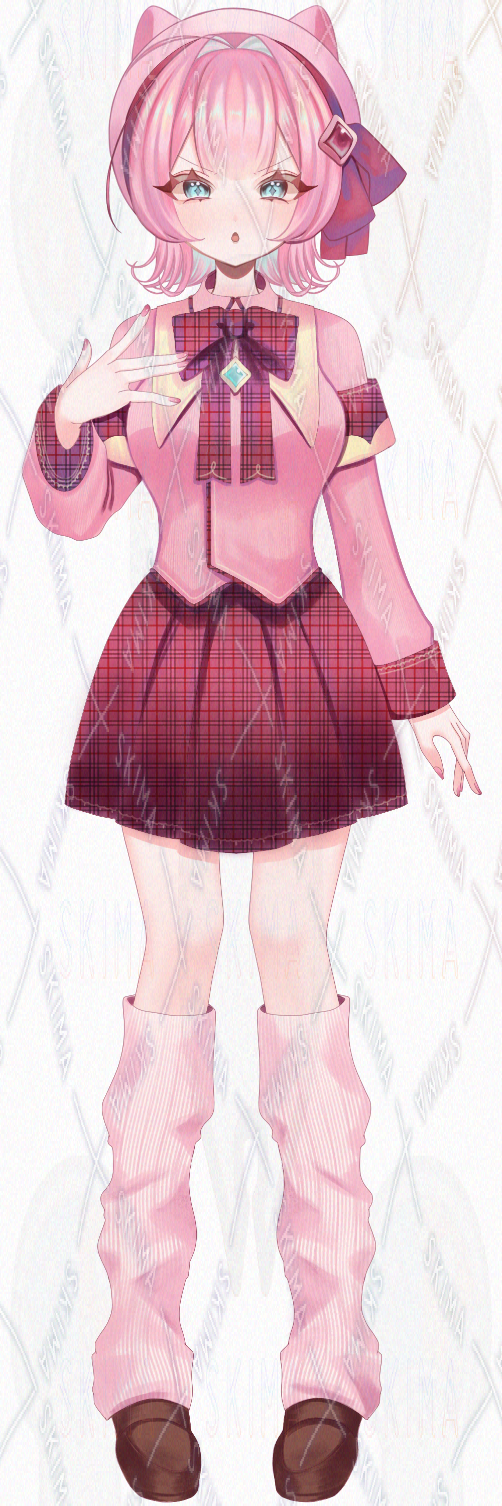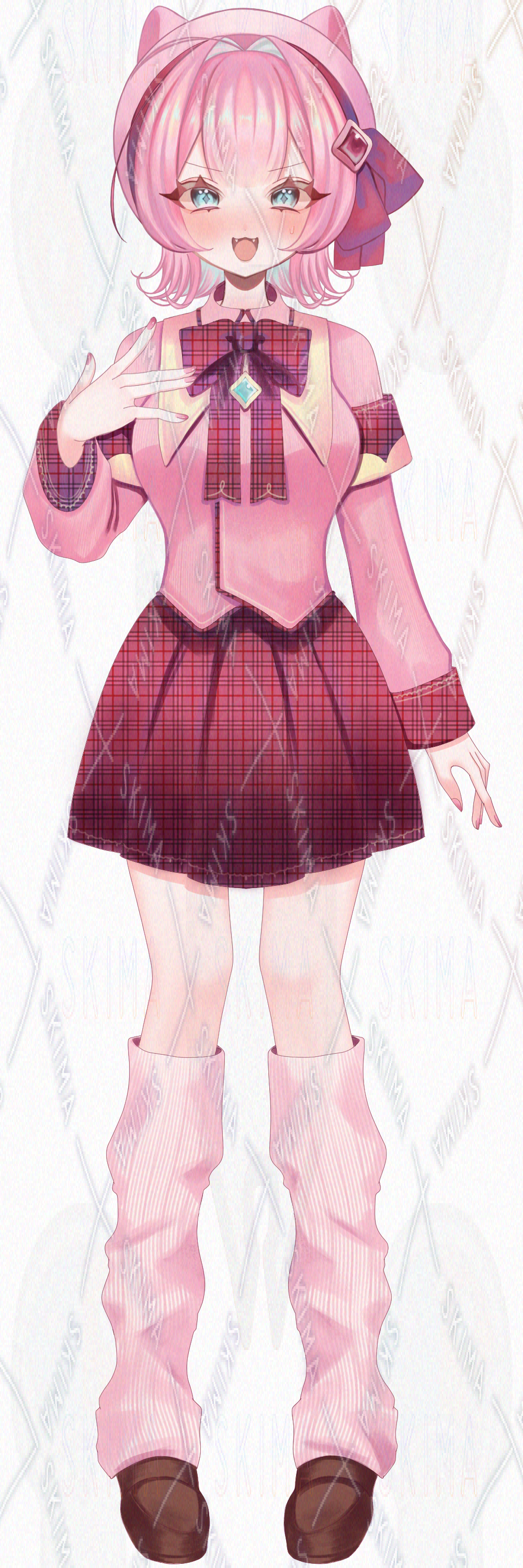 ピンク髪・碧眼、猫耳ベレー帽と制服を着た女の子の立ち絵です。