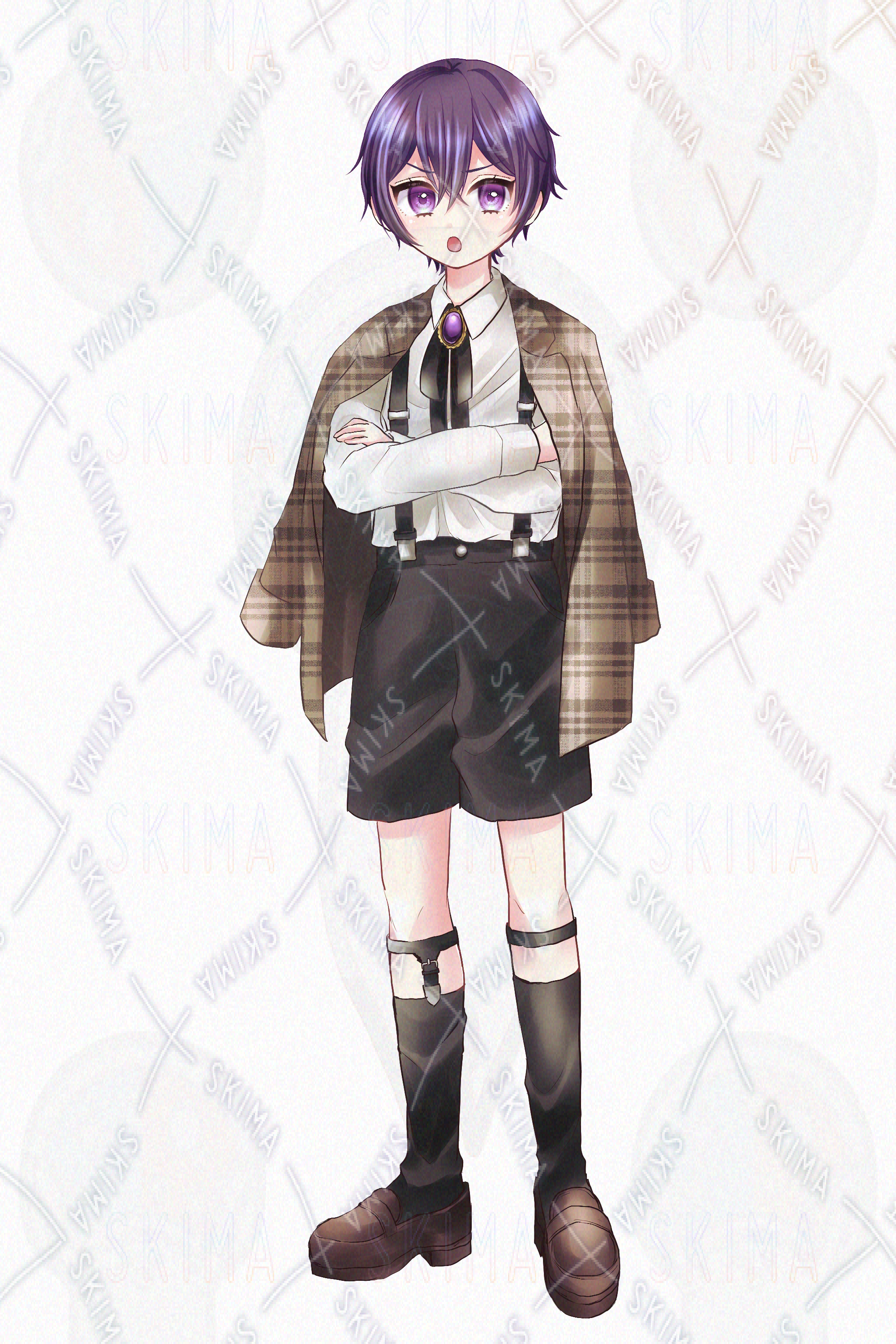 少年/ショタ/お坊ちゃん/サスペンダー/肩掛けジャケット/ソックスガーター