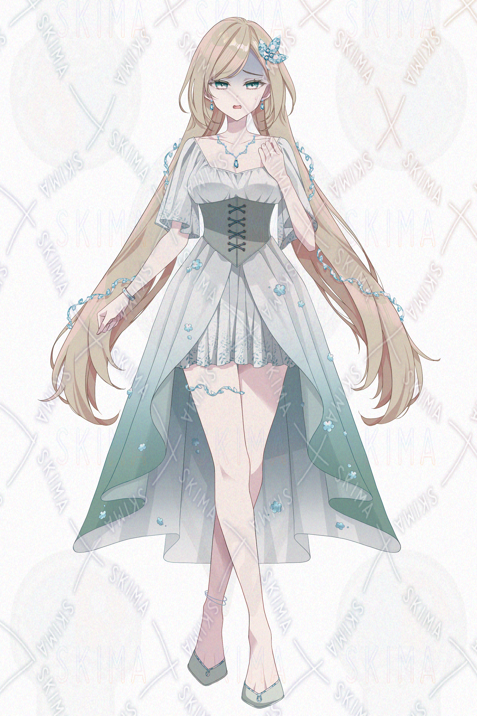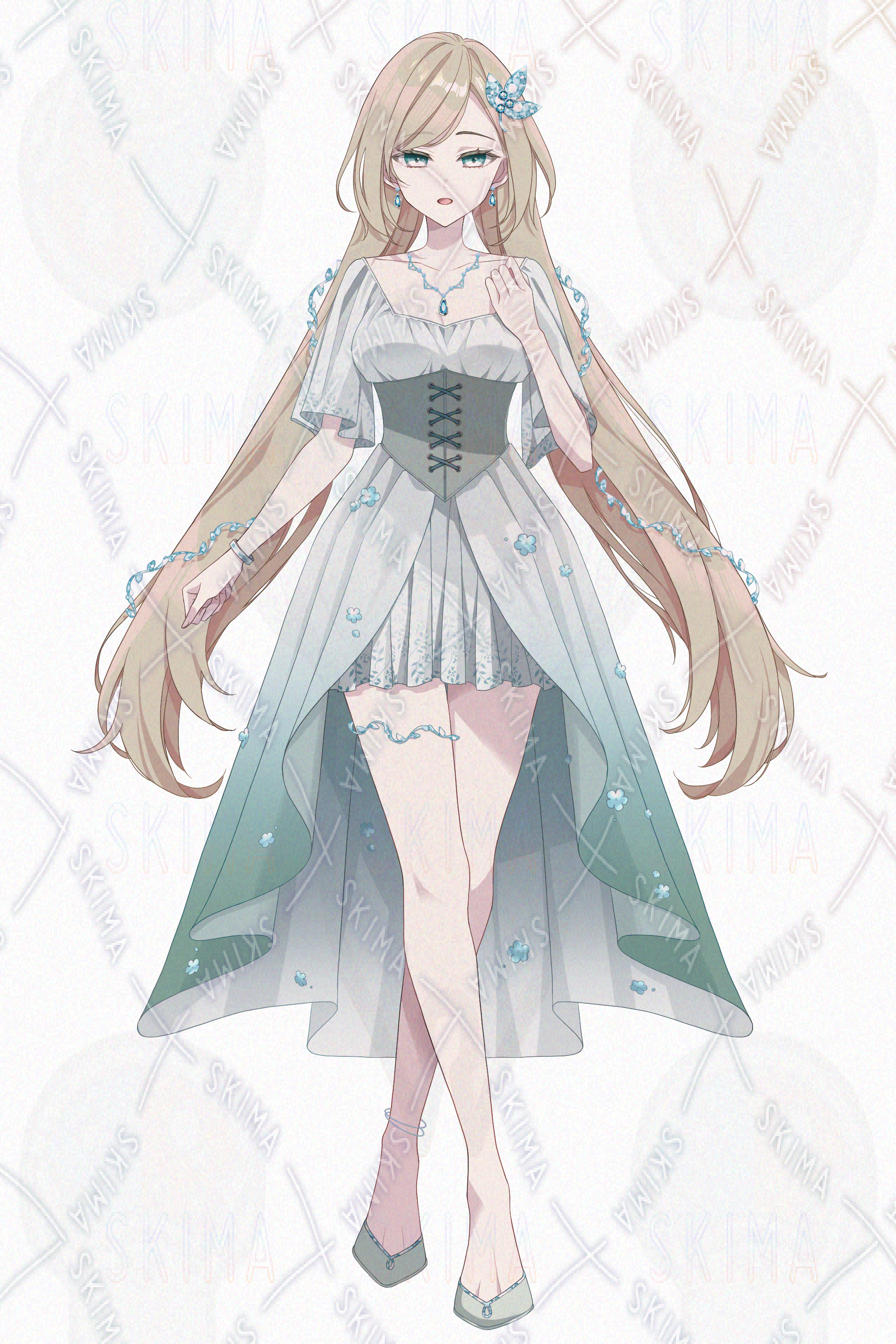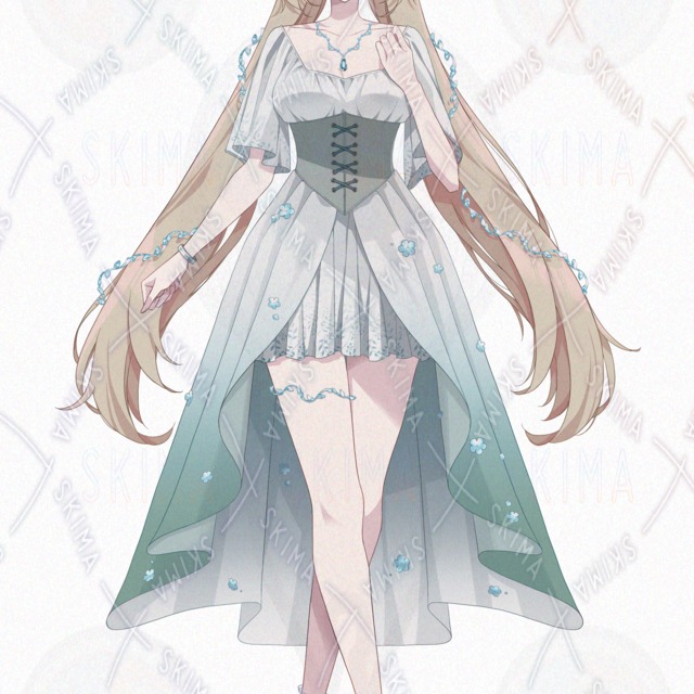 女子、女性、ドレス、髪飾り、ファンタジー、妖精、女神、エルフ、長髪、宝石