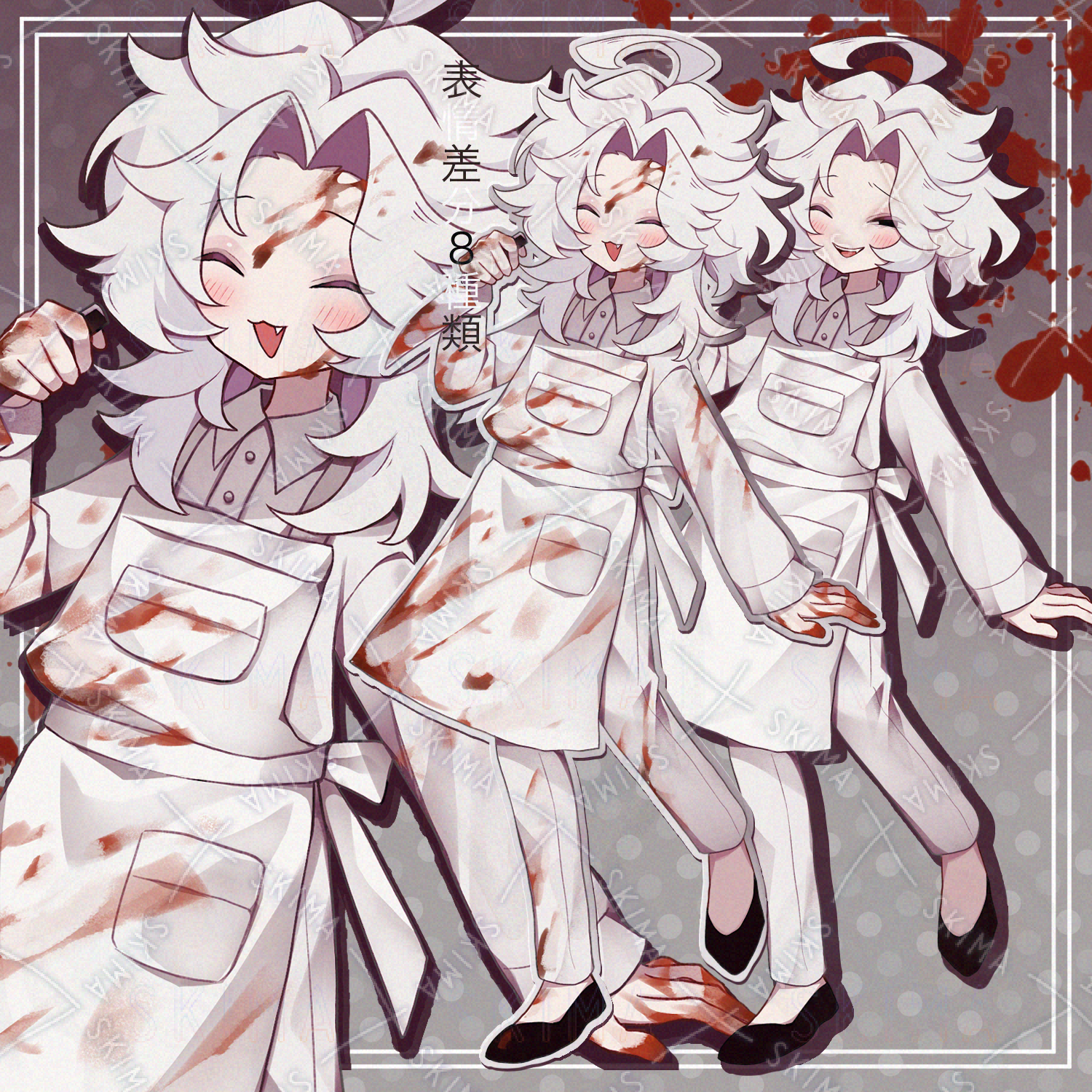 かわいい/女の子/男の子/美少年/美少女/中性的/白髪/エプロン/不気味/血液/怖い/アホ毛