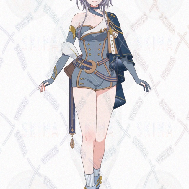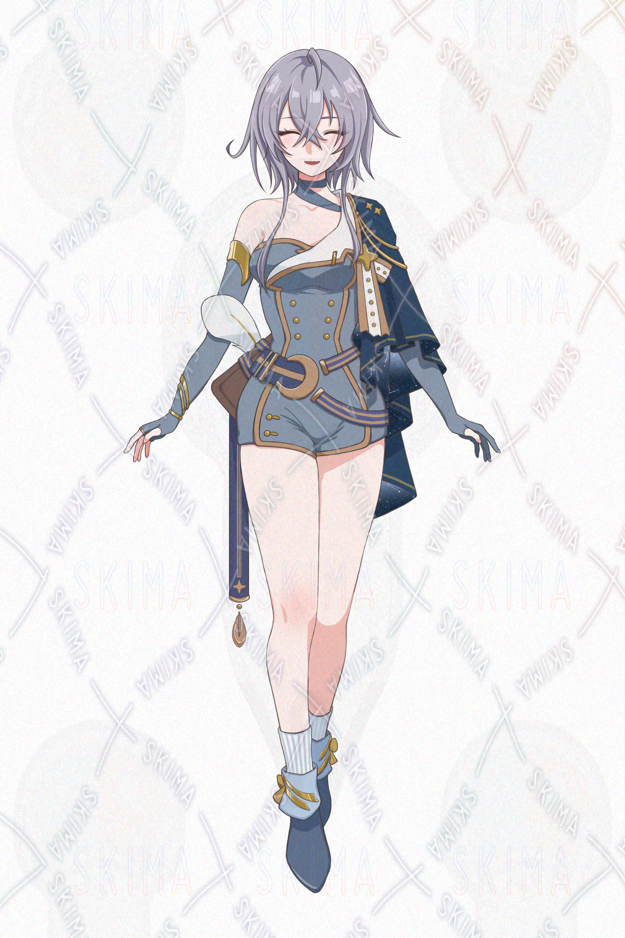 月、星空、夜、星座、ブルー、青、寒色、梟、羽根、ショートヘア、触覚、ショートパンツ、ペリース、マント、ベルト、本、神秘、幻想、占い