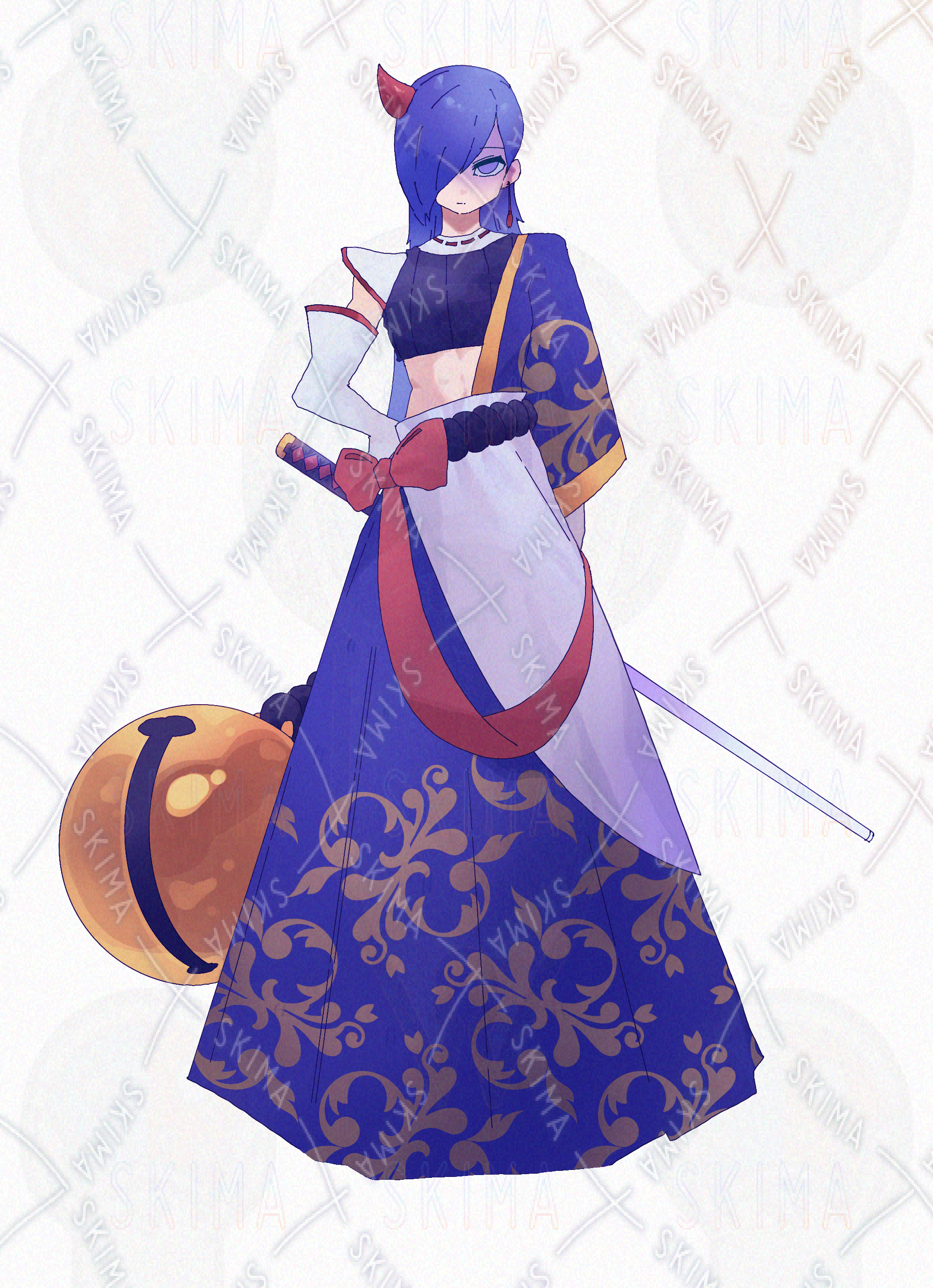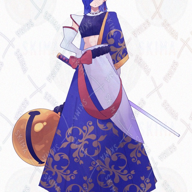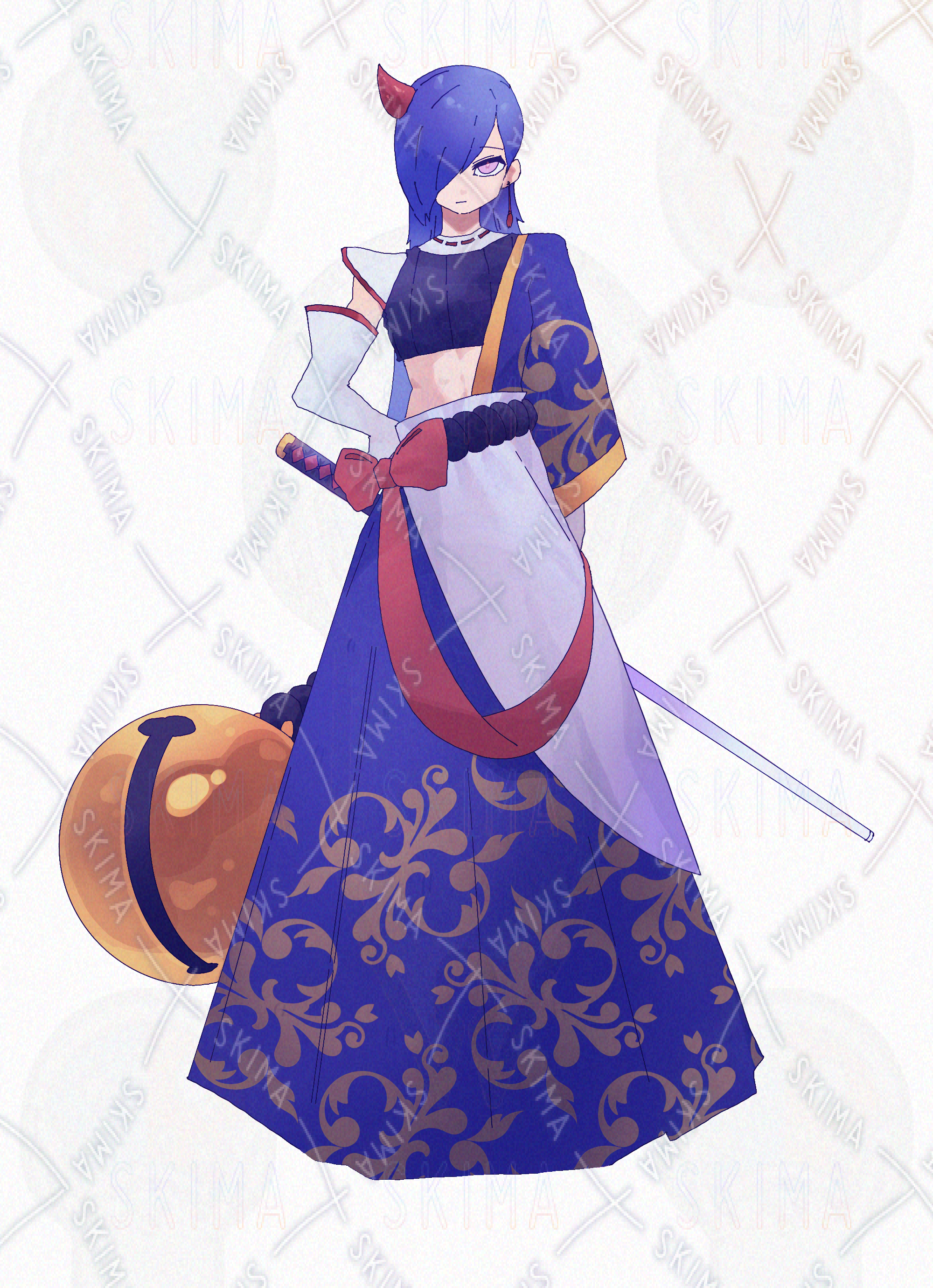 瑠璃色の鬼女侍"Adopt/全身立ち絵/表情差分9種