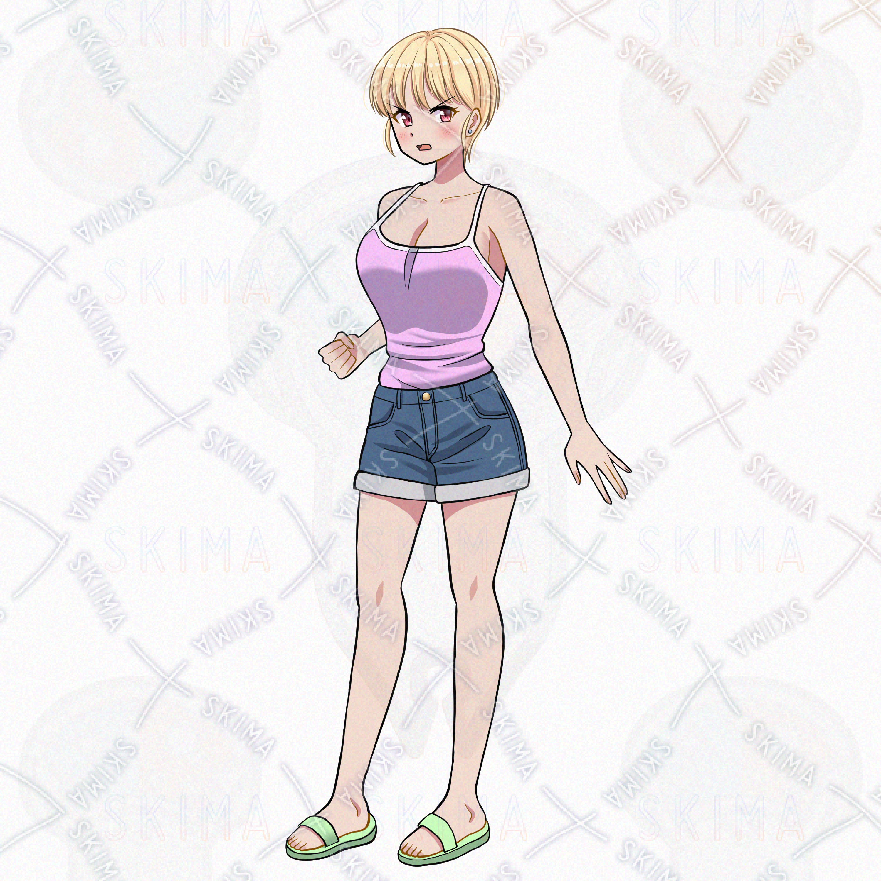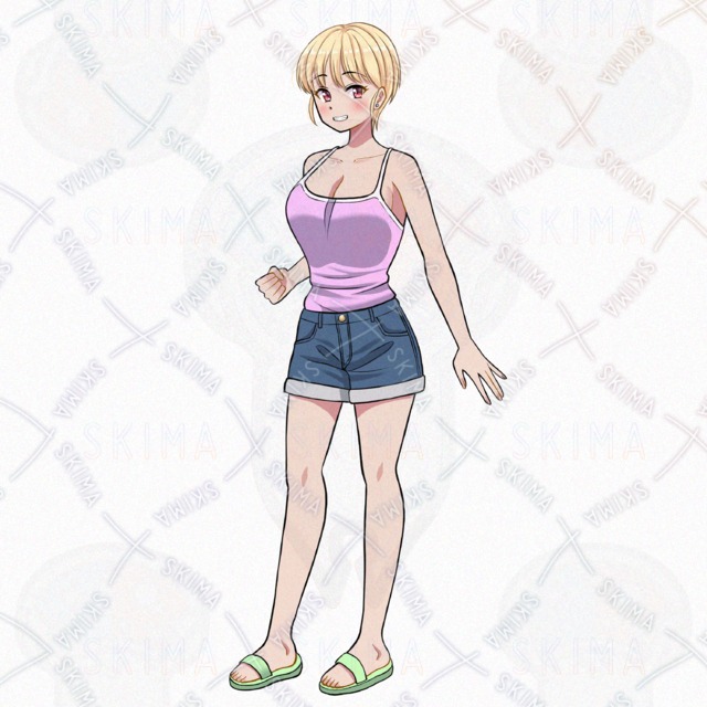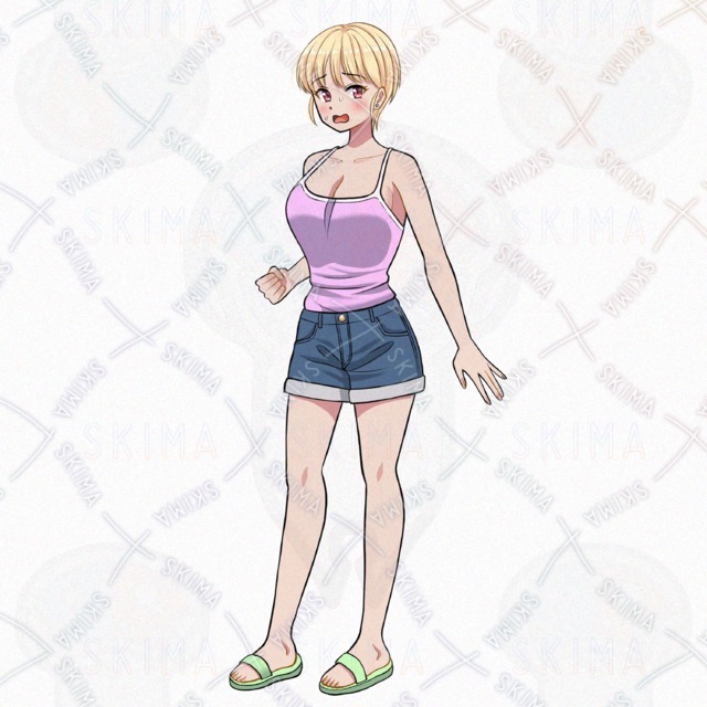 女の子/少女/キャミソール/ショートパンツ/サンダル/金髪/ショートヘア
