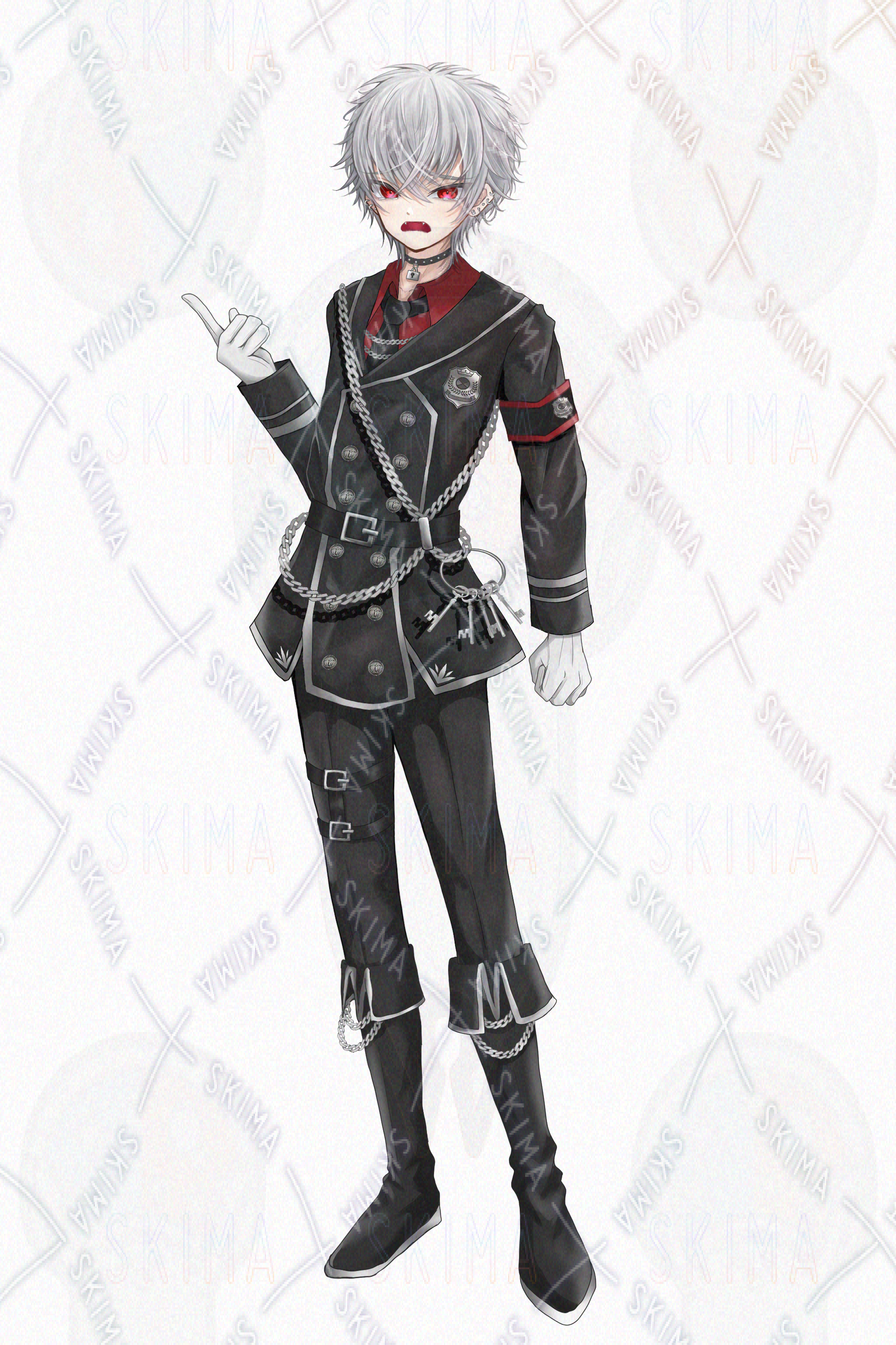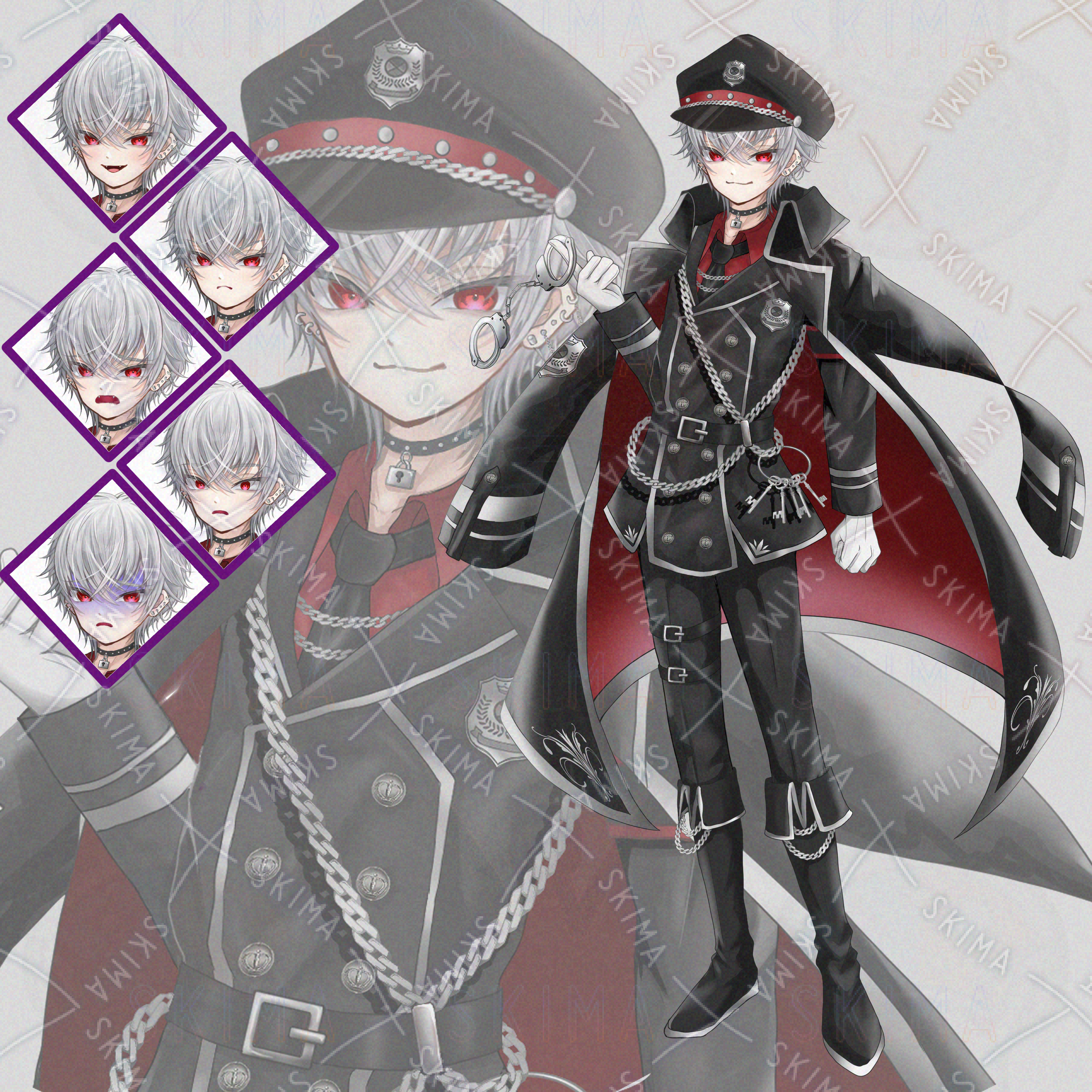 立ち絵/表情差分5種類(笑う/怒る/泣く/驚く/青ざめる)/帽子/手錠/マント(前)/マント(後) 計10点