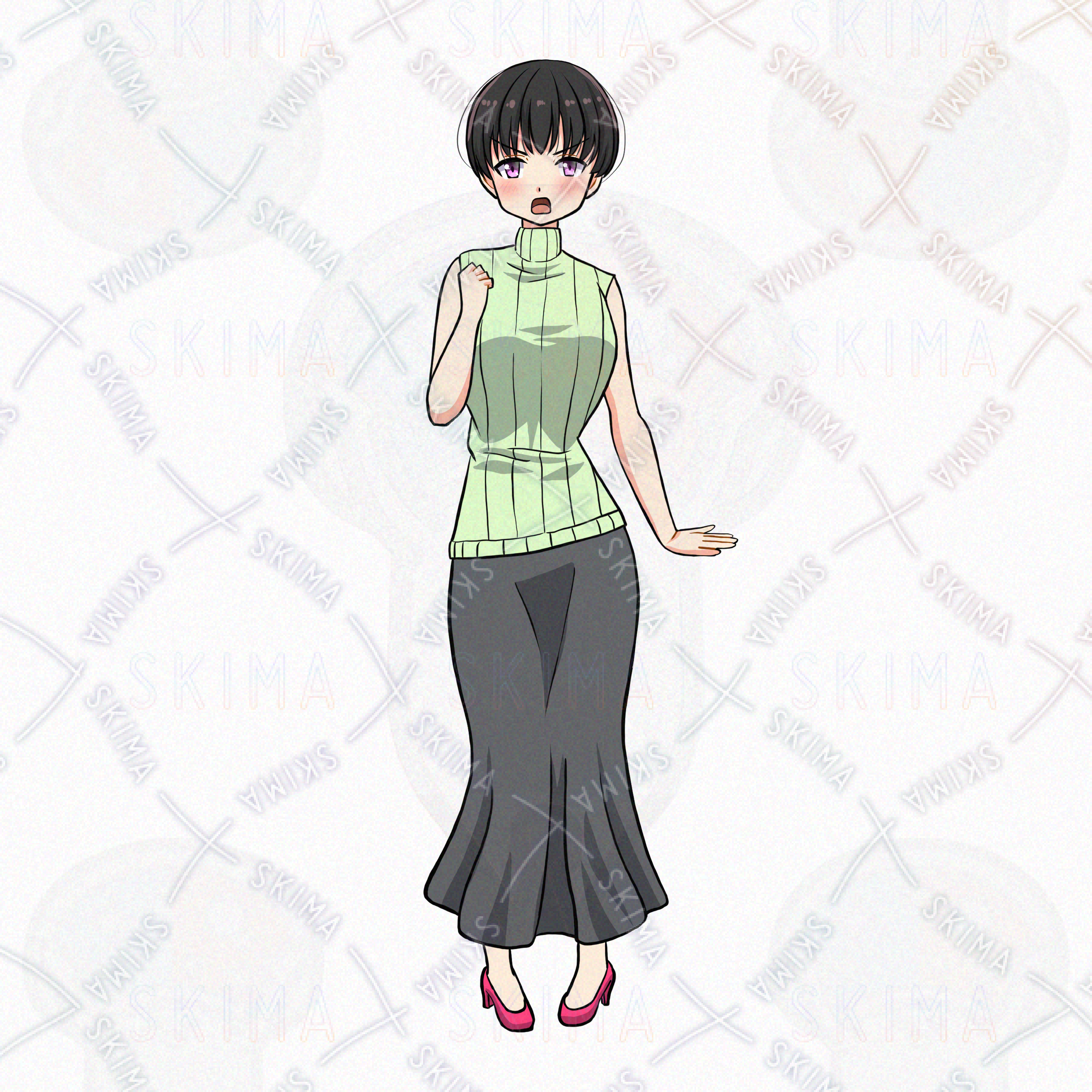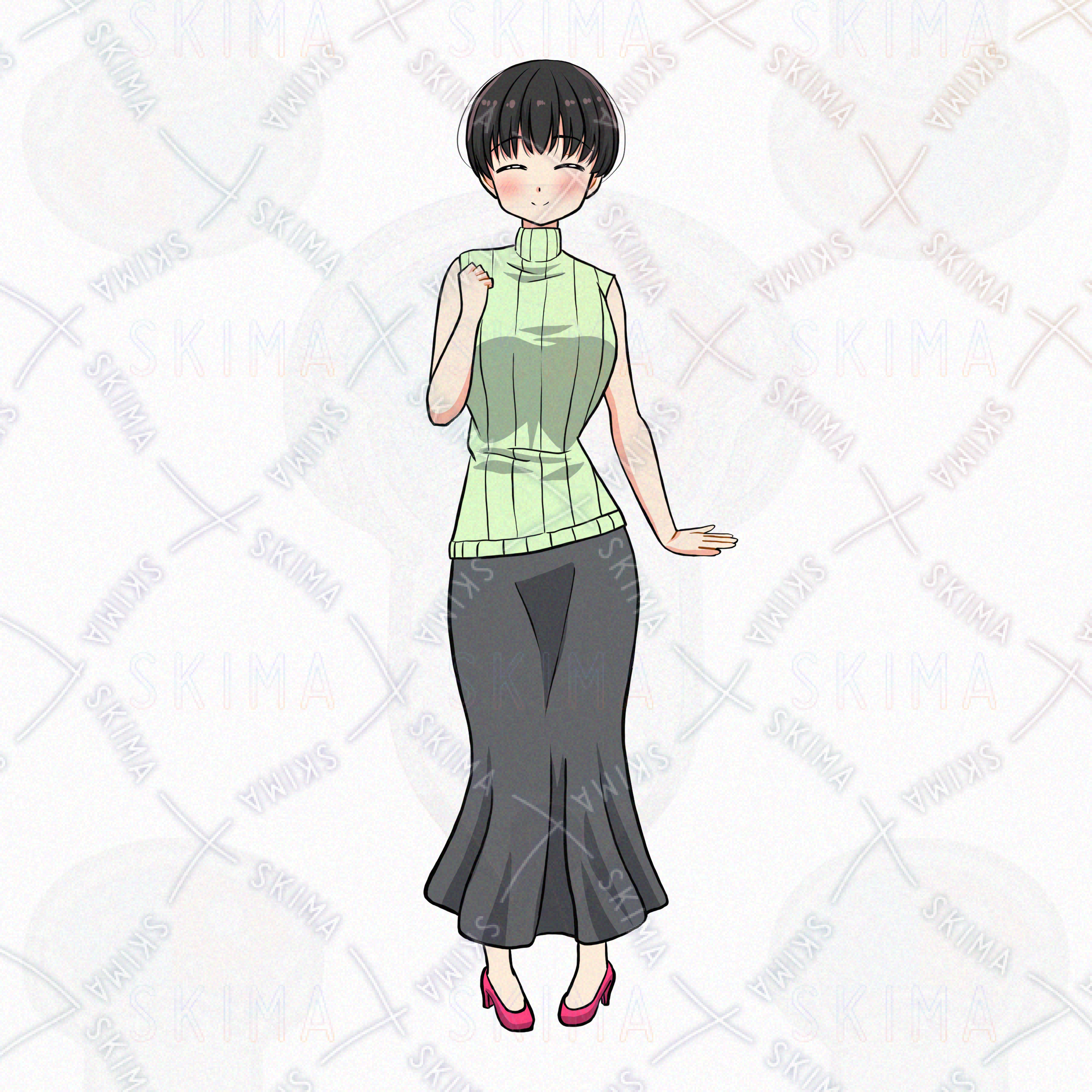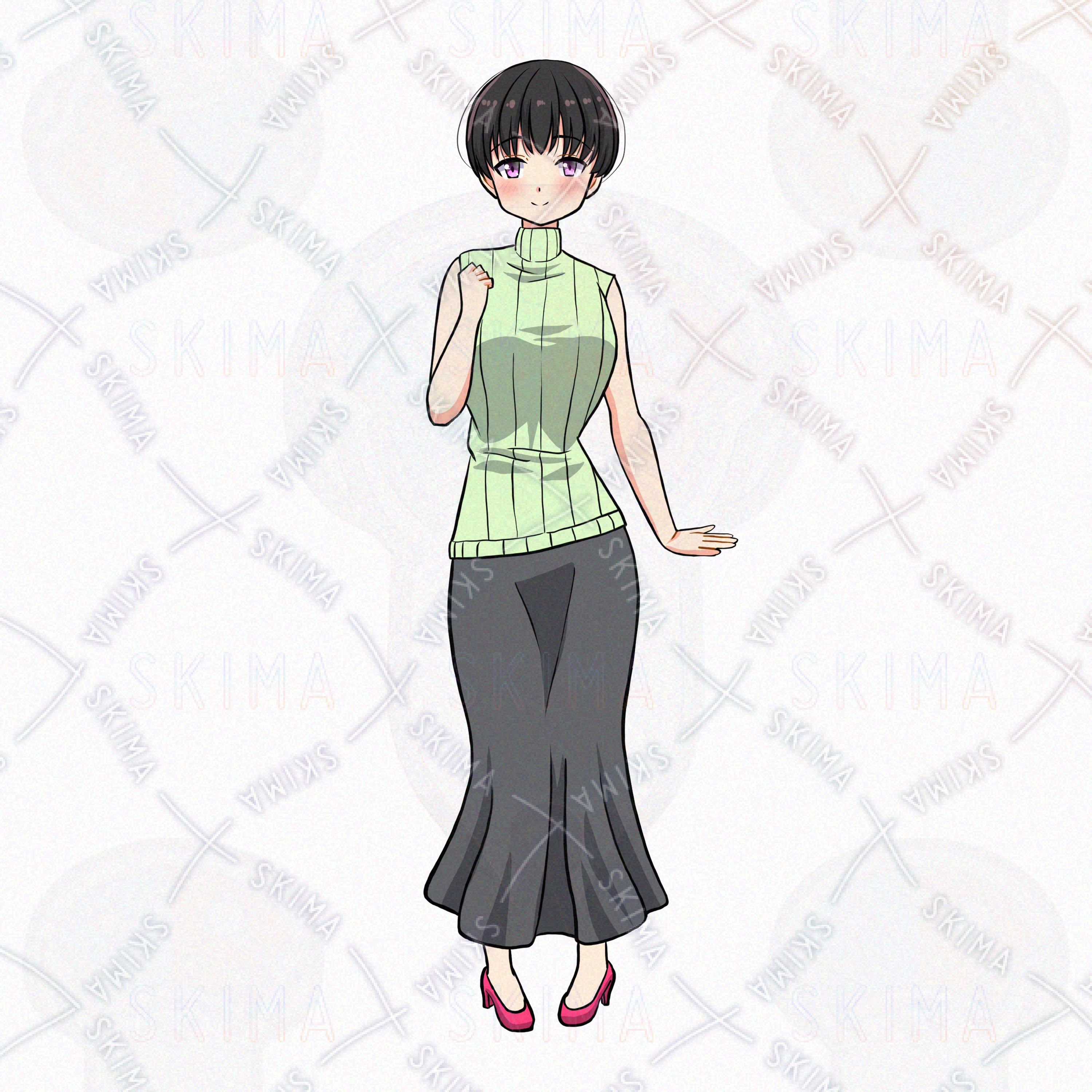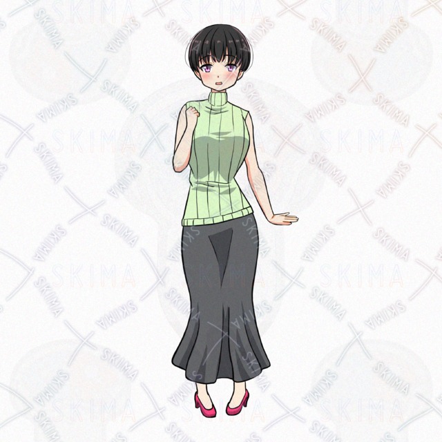 女/女性/黒髪/女の子/ロングスカート/ショートヘア/ノースリーブ