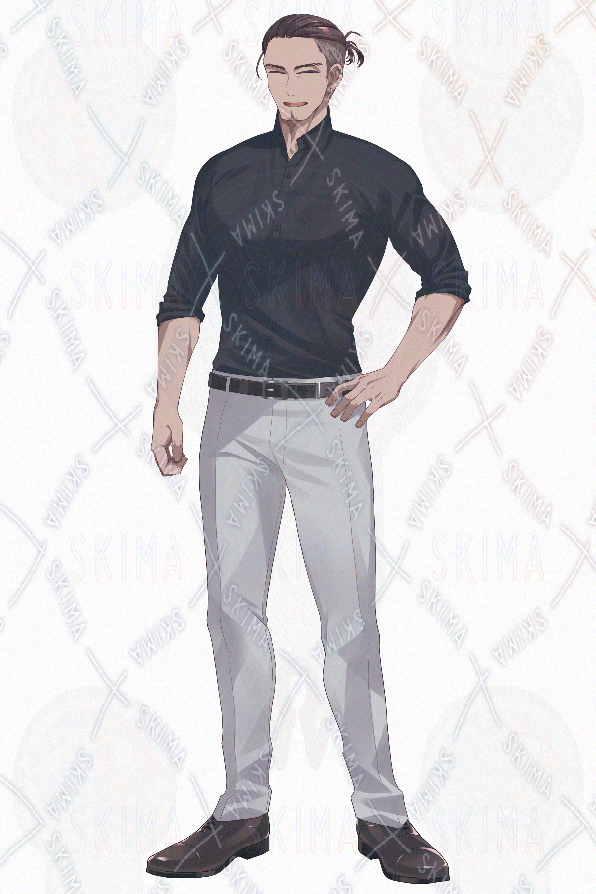 青年、男子、筋肉、マッチョ、マンバン、サムライヘア、ツーブロック、褐色、日焼け、顎鬚、アゴヒゲ、ひげ