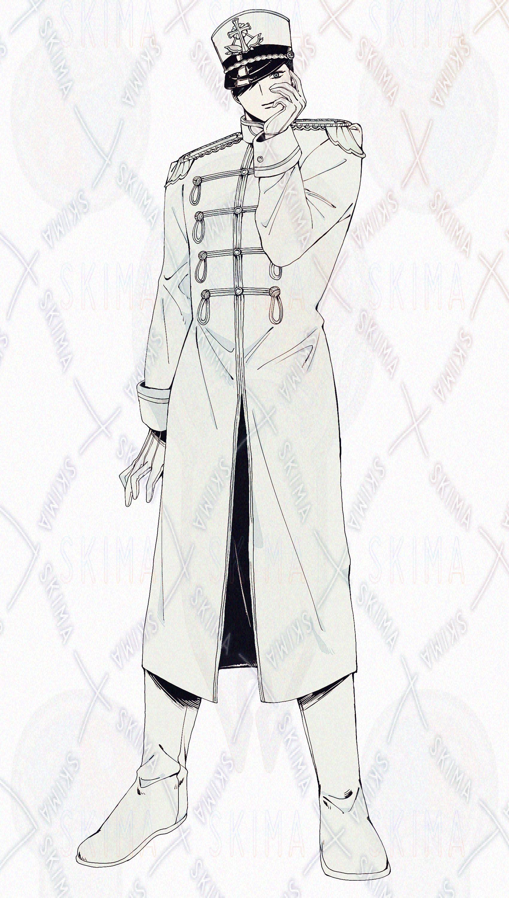 軍服 手袋 少年 青年 制服 黒髪 斧 洋風