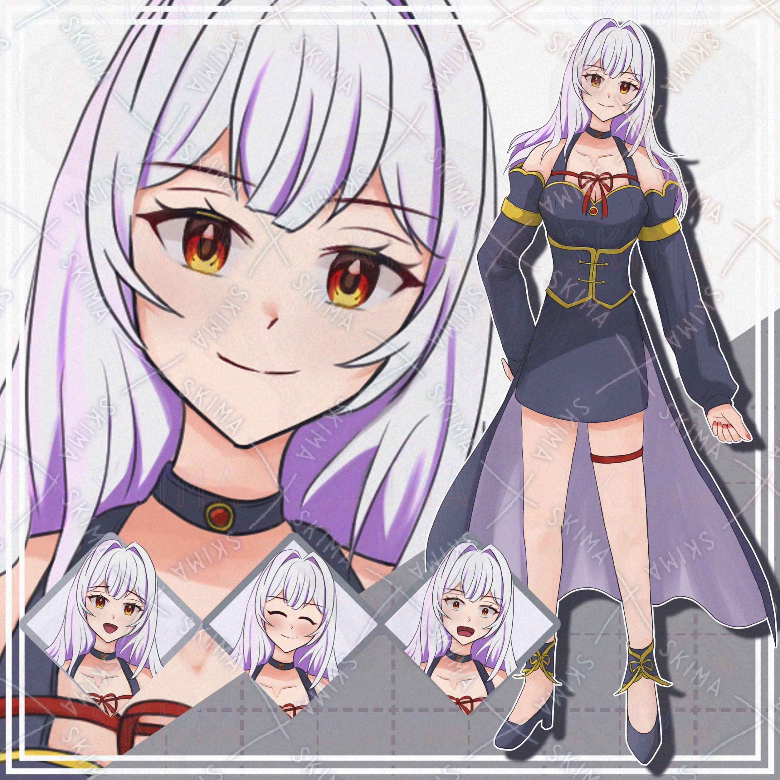 【表情10種】白髪ロングの女性【立ち絵】