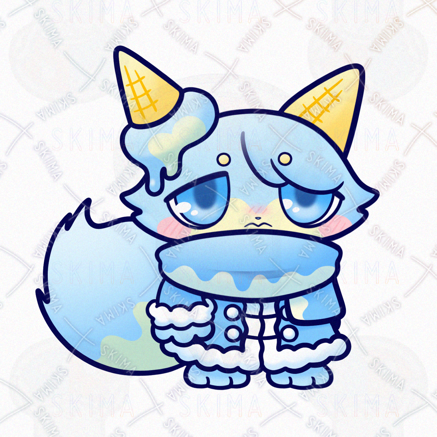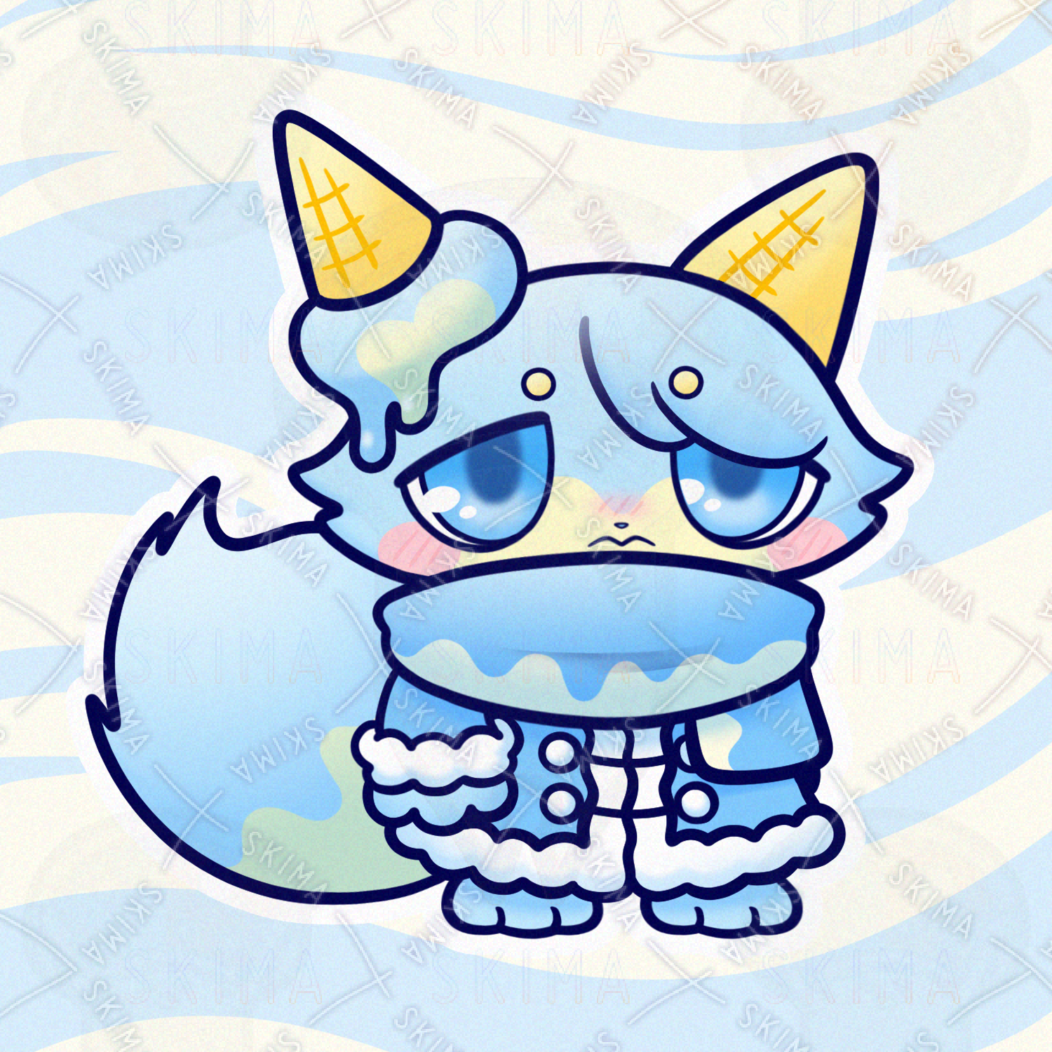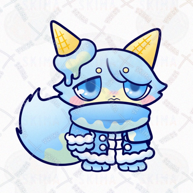 動物/生き物/犬/いぬ/イヌ/猫/ねこ/ネコ/狐/きつね/キツネ/食べ物/スイーツ/お菓子/サイダー/クリームソーダ/アイスクリーム/シャーベット/ラムネ/マフラー/ふわふわ/もこもこ/もふもふ/氷属性/垂れ目/たれ目/タレ目/気弱/妖精/精霊/魔物/使い魔/モンスター/人外/敵キャラ/ファンタジー/デフォルメ/マスコット/ゆるい/ゆるかわいい/可愛い