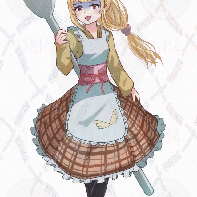 【検索用】女の子、女子、少女、戦闘、武器、ファンタジー、和風エプロン、金髪