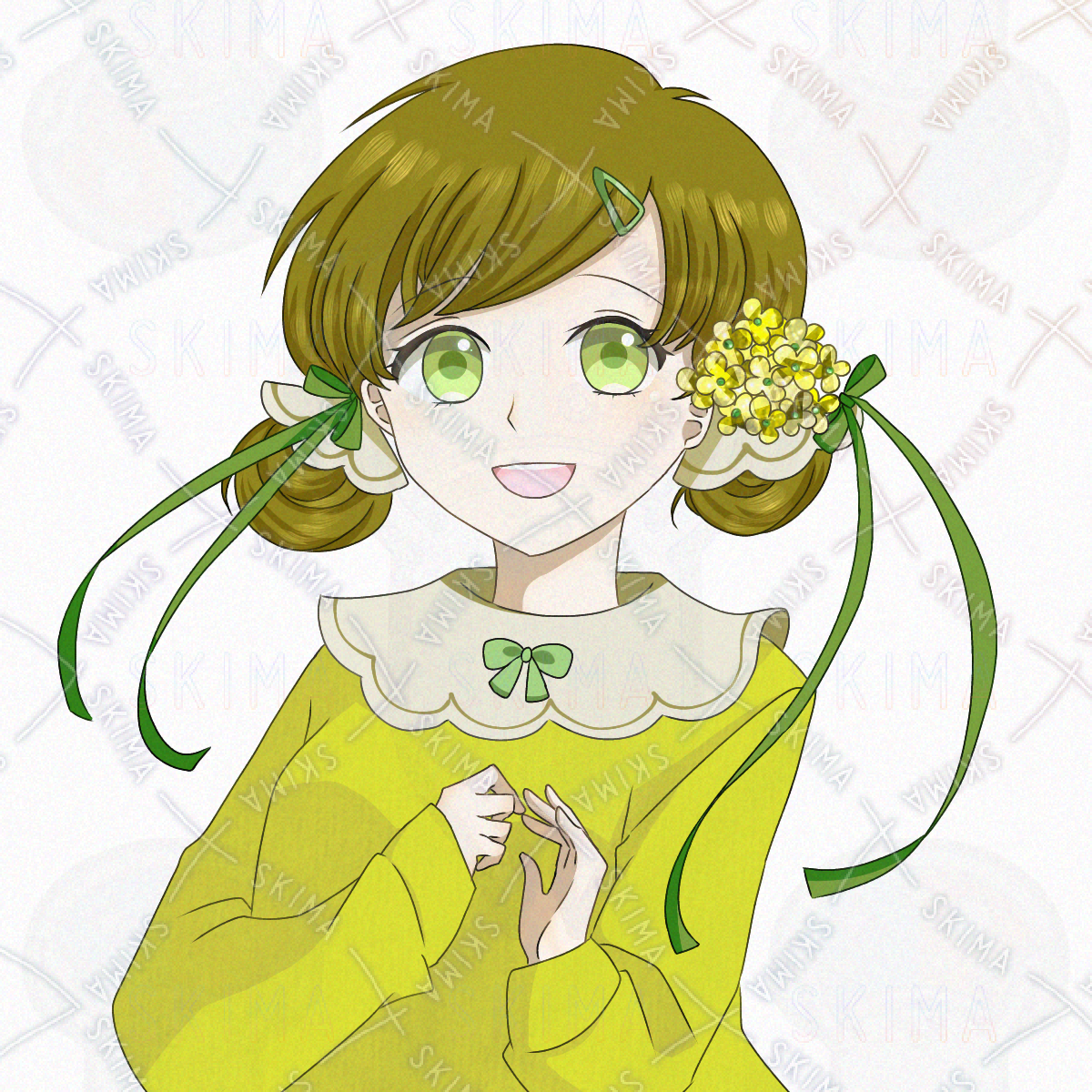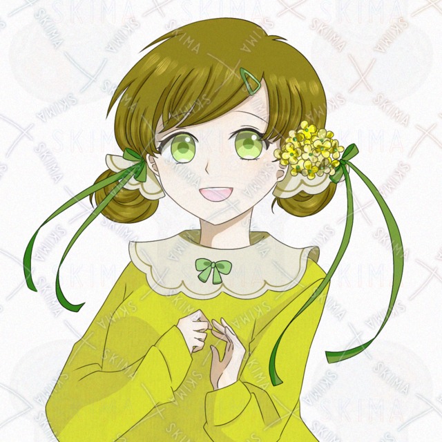 検索用*童顔、茶髪、お団子、ヘアピン、リボン、春、黄緑、ファンタジー、おっとり、ふわふわ、可愛い、きらきら