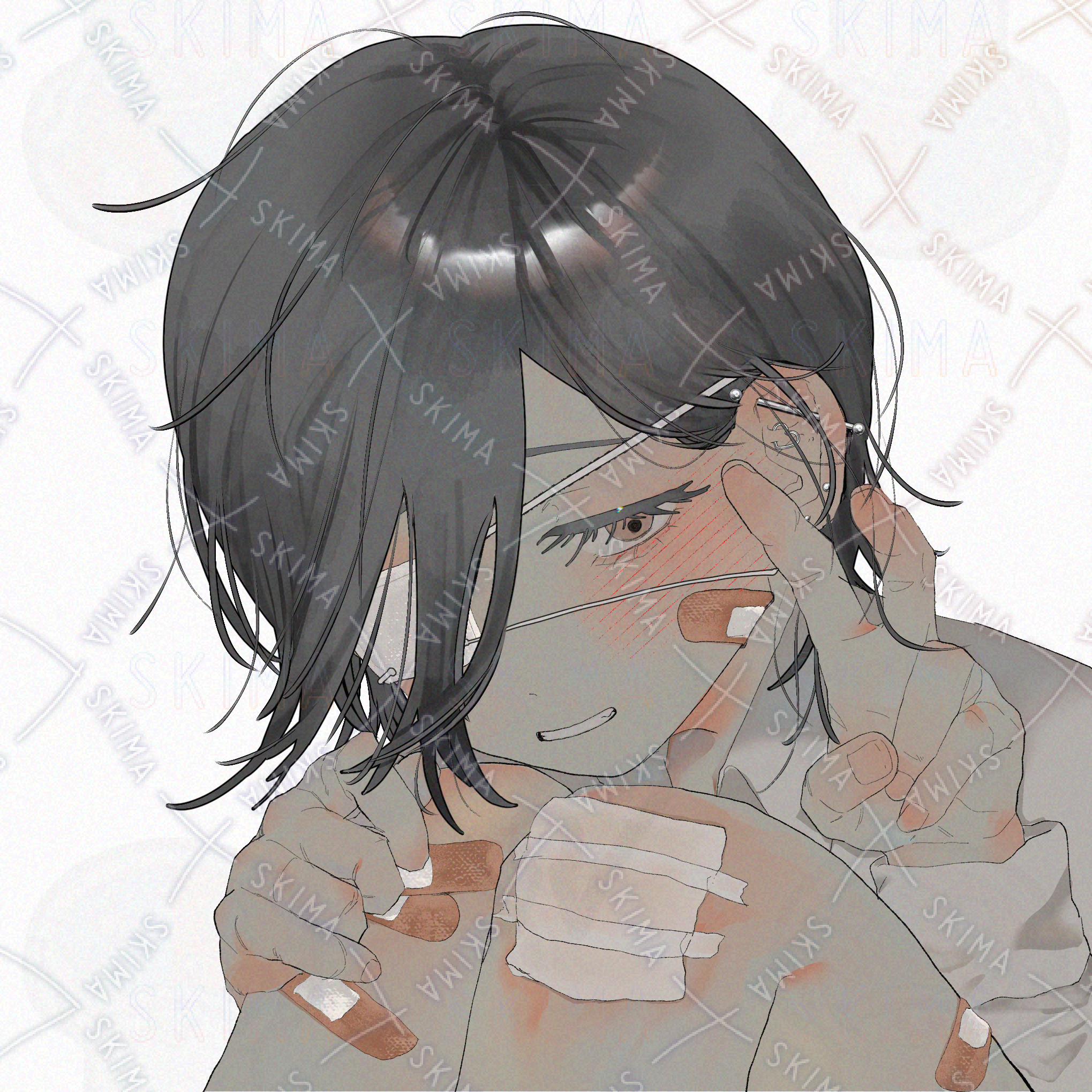 女の子/男の娘/ピアス/絆創膏/怪我/病み/かわいい/黒髪/笑顔/眼帯/不穏