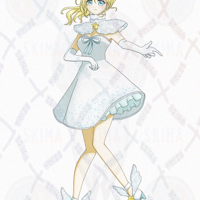 検索用*宝石、金髪、ポニーテール、ワンピース、ケープ、リボン、フリル、アイドル、羽根、冬、妖精、ファンタジー、清楚、可愛い、きらきら