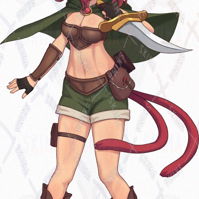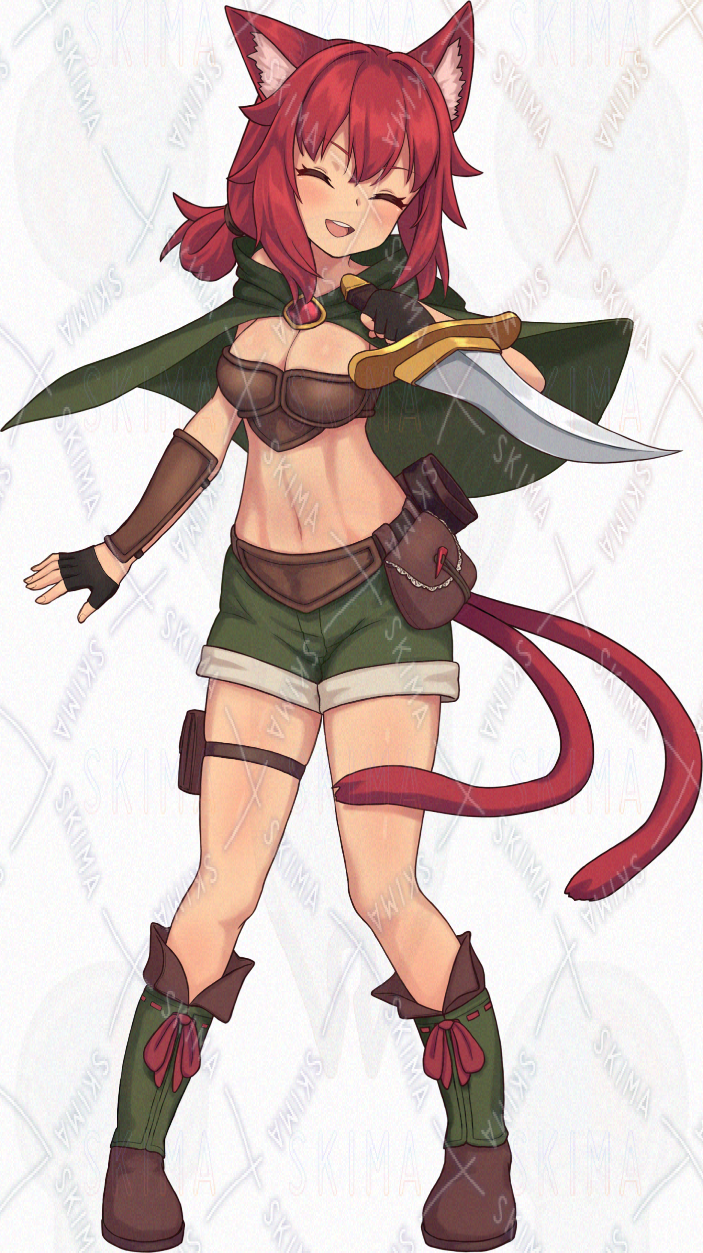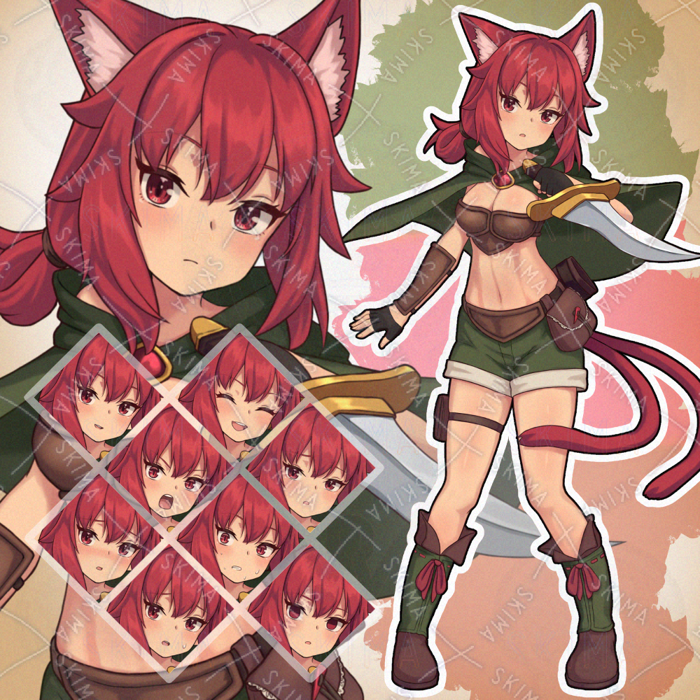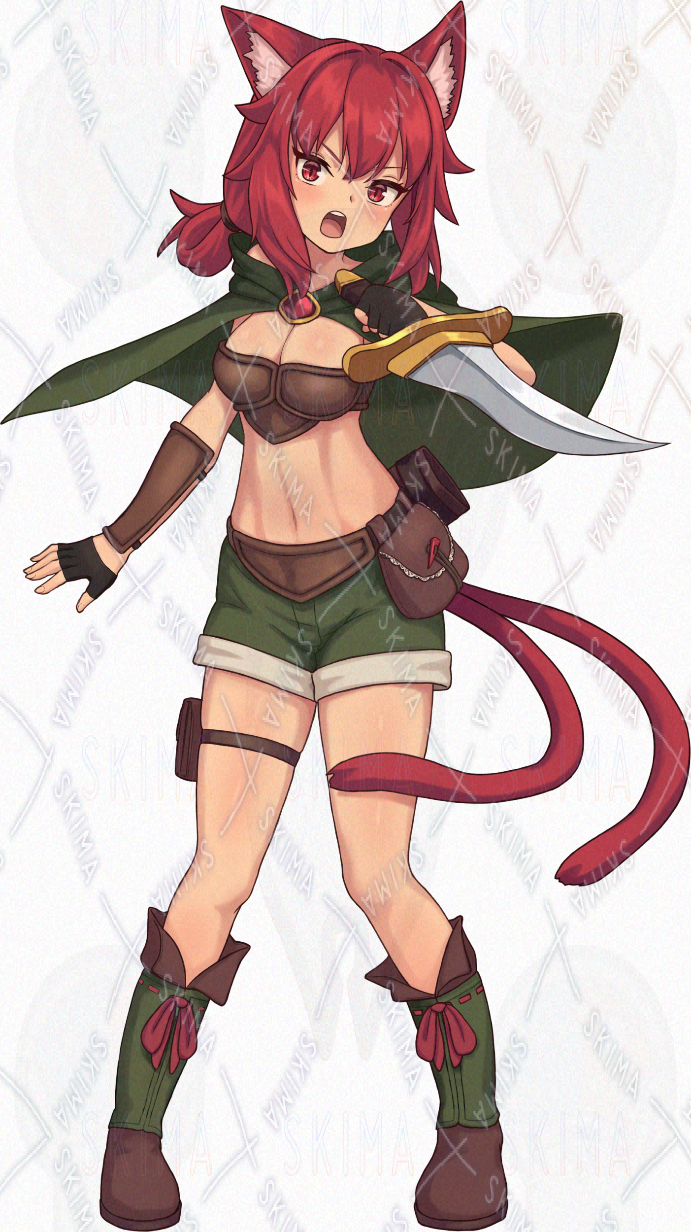 ファンタジー 冒険者 女の子 ケモ耳 赤髪 シーフ 盗賊 ダガー